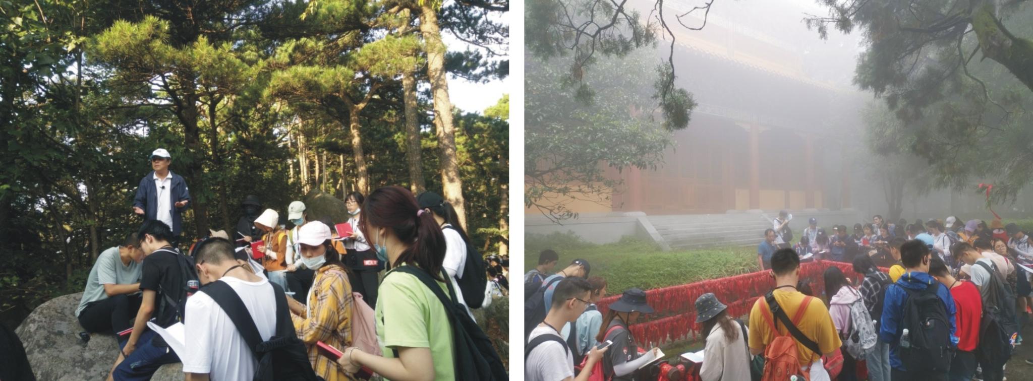 在实习期间,副书记冯丹、副院长沈焕锋亲临庐山,与实习师生们一道行走在求知探索的路上,给大家以极大的鼓舞。和指导老师们一起在传统实习线路的基础上,积极探寻新的实习资源,进一步拓展了实习线路。