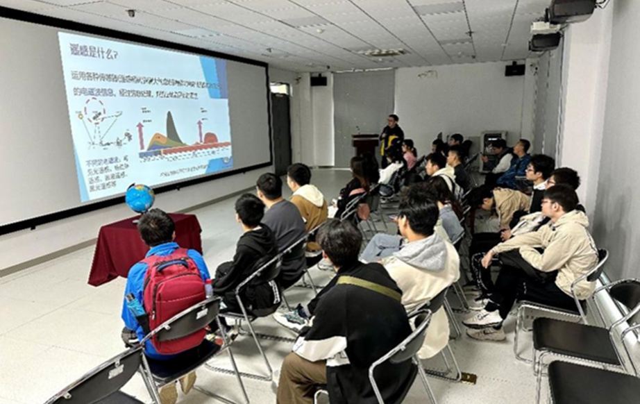 在活动室,同学们认真聆听了站长的报告,了解了遥感的电磁波原理和我国气象、陆地、海洋系列卫星发展情况,进一步学习了遥感卫星地面站接收、处理、存档和分发各类遥感卫星数据的功能。