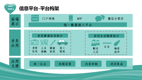 为解决武汉返乡人员健康信息泄露、社区居民健康信息重复统计、武汉等疫情严重地区的社区居民生活问题,设计疫情居民生活信息平台,通过互联网或者手机app提供疫情实时动态、患者同程查询等信息服务,人员健康检测、数据统计服务,以及远程网络购物等功能。
