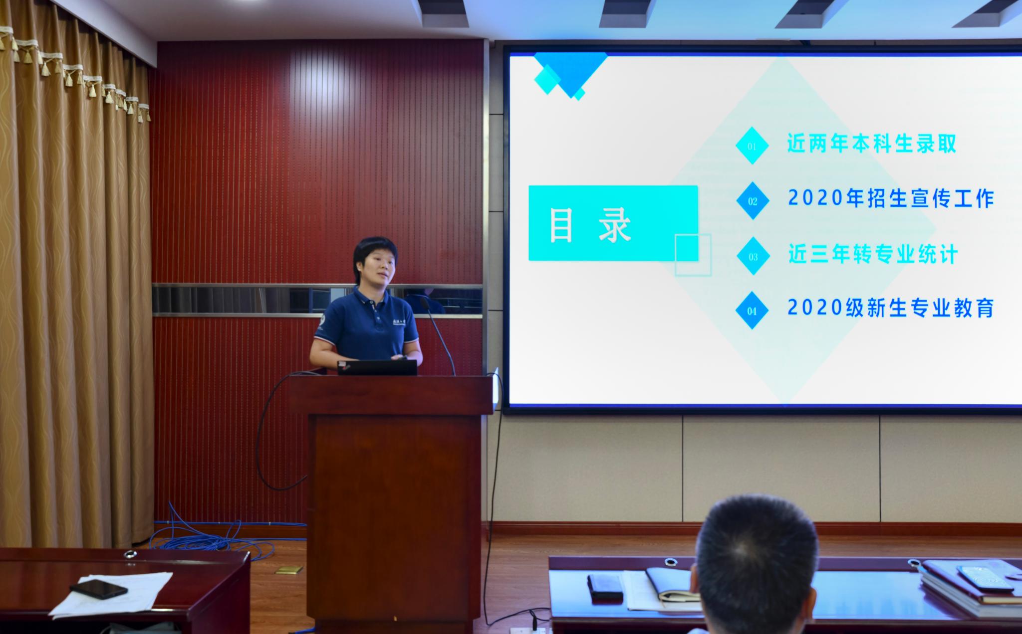 冯丹副书记对学院近年来本科招生情况进行了报告。冯书记对近几年学校招生、转专业等情况进行了详细的数据分析,指出了学校专业录取政策的变化带来的机遇与挑战,号召学院积极应对,不断提高生源数量和质量。