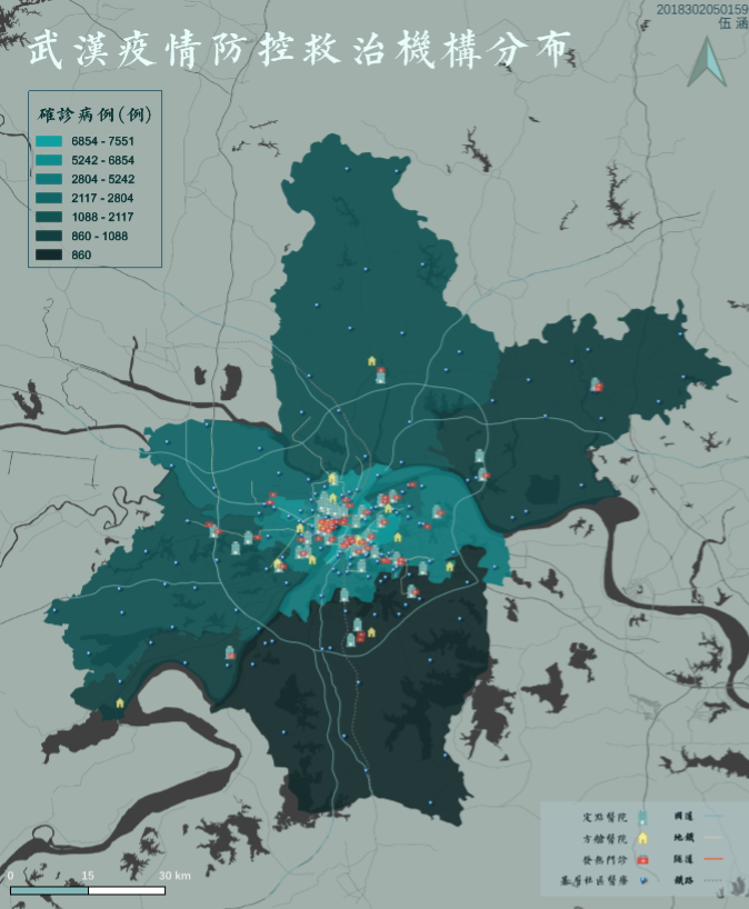图2-4 黄丽娜老师指导学生制作的武汉疫情防控救治机构分布图