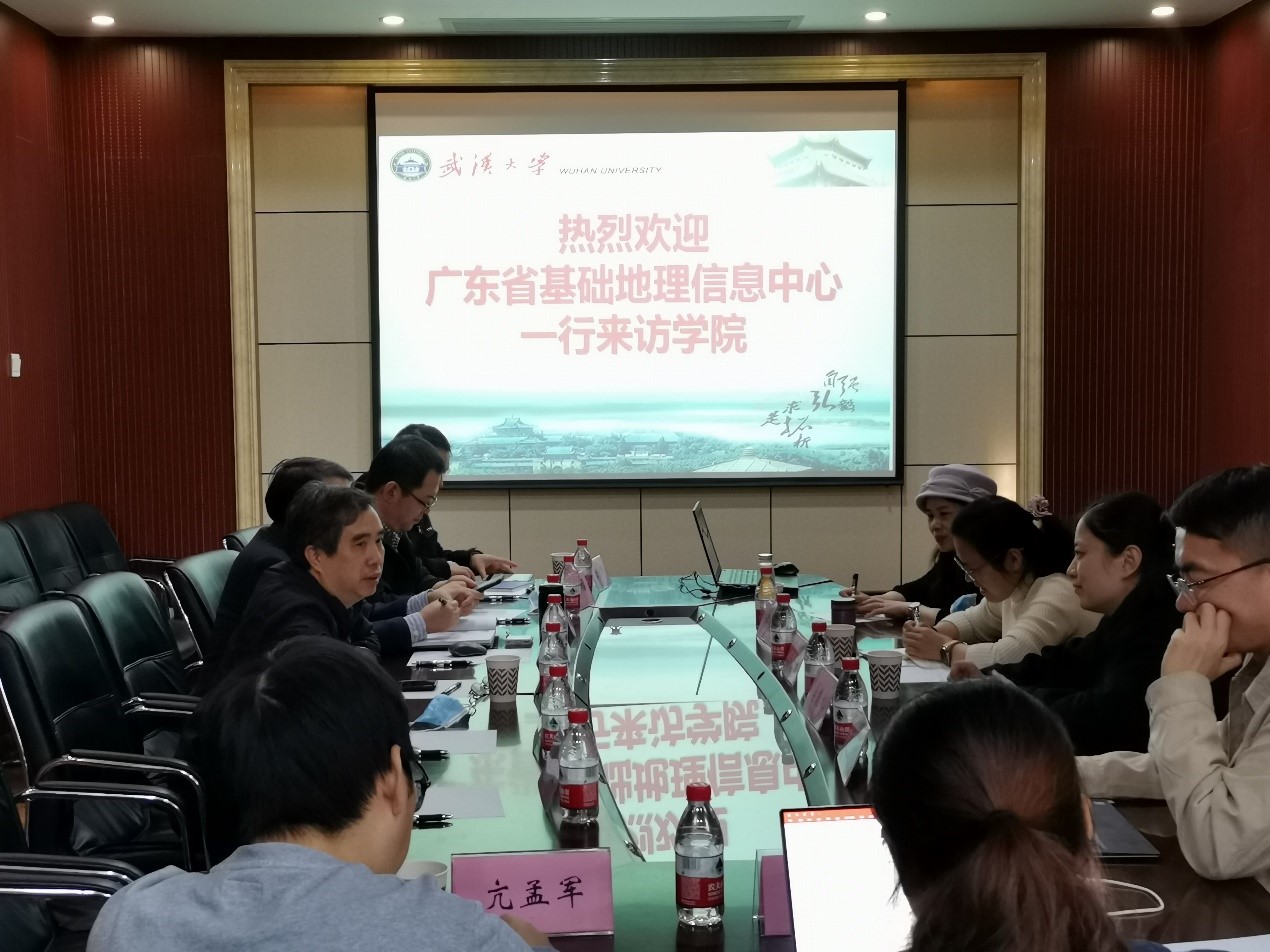 2020年11月23日,广东省国土资源技术中心(广东省基础地理信息中心)的戴江鸥、李慧姝、谭耀华等三位高工一行来91沈先生 调研交流。会议由学院地理信息与地图科学系主任任福教授主持。