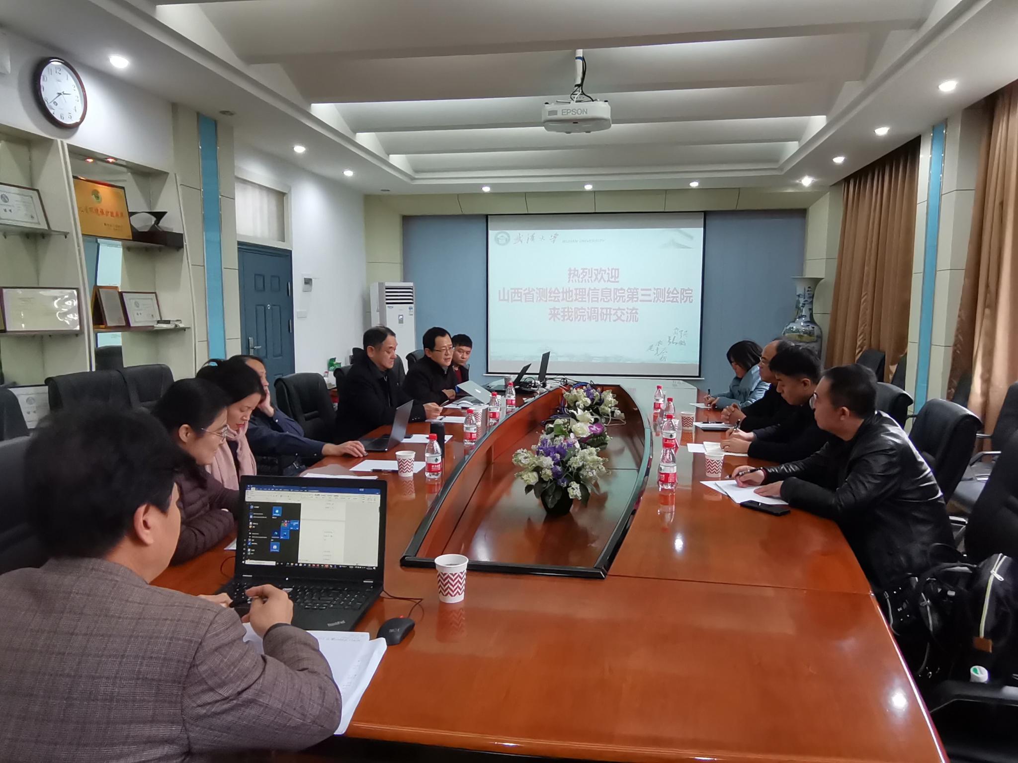 2020年12月3日,山西省测绘地理信息院第三测绘院院长赵康、副院长冯建军、地理信息部主任吴利青和地图文化创意部主任李志强一行来91沈先生 调研交流。会议由学院地理信息与地图科学系主任任福教授主持。