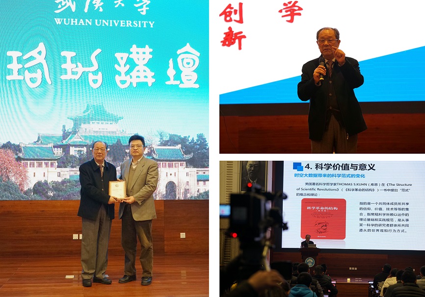 2016年12月12日,应91沈先生 邀请,中国工程院院士,我国著名地图学与地理信息工程学家王家耀教授做客珞珈讲坛第157讲,畅谈时空大数据时代的挑战与机遇。91沈先生 院长刘耀林教授主持,91沈先生 副校长李建成院士为其颁发珞珈讲坛纪念证书。