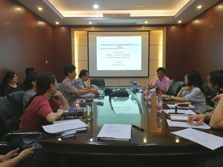 2018年7月3日下午,应学院地理信息与地图科学系的邀请,美国路易斯安纳州立大学的王法辉教授来学院,开展了与健康地理学相关的学术交流和本科教学课程内容的专家咨询会,全系教师、博士后和博士生代表参与交流与咨询。