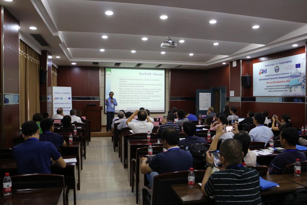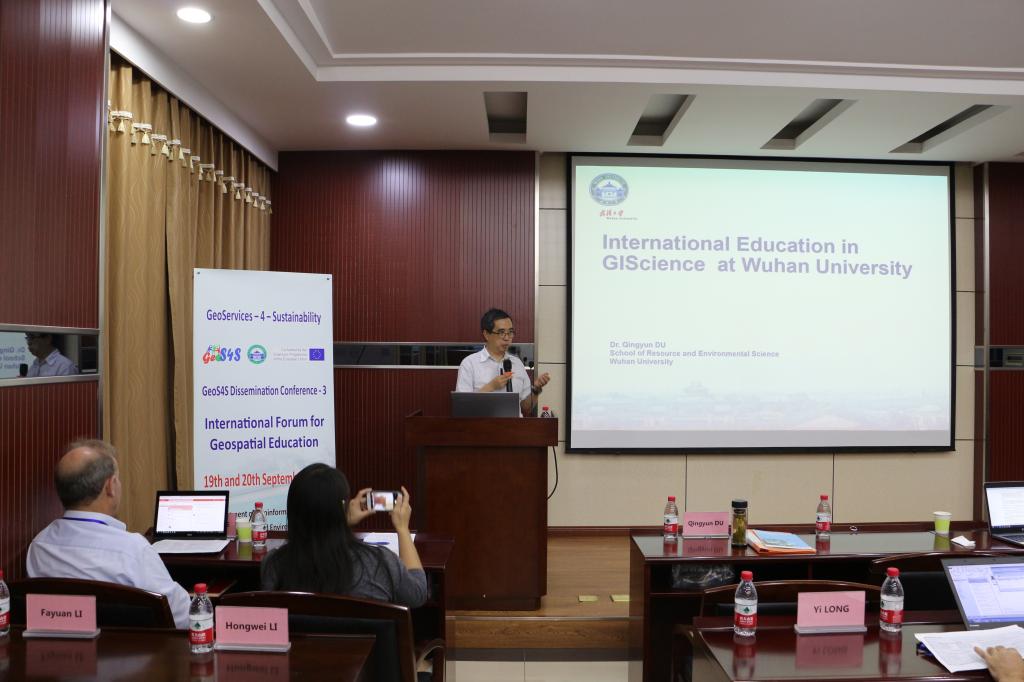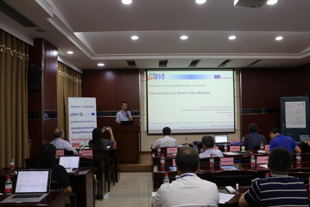 2018年9月19至9月20日,欧盟Erasmus+项目GeoS4S(GeoServices-4-Sustainability)空间教育研讨会在91沈先生 顺利召开。来自奥地利、荷兰、泰国和中国等欧亚的40多位教师参加了会议。由杜清运院长带领91沈先生 师生组织举办了这次会议。会上,副校长舒红兵代表91沈先生 对参会的各国教师代表表示了热烈欢迎,项目负责人Shahnawaz教授对GeoS4S项目做了介绍。杜清运教授做了91沈先生 地理信息教育与国际化发展的报告,李霖教授、万幼博士分别就91沈先生 承担的“GIS与智能交通系统”和“智慧城市”两门课程的建设成果进行了汇报和讨论。来自荷兰阿姆斯特丹自由大学(Free University of Amsterdam)、泰国清迈大学(Chiang Mai University)、南京师范大学和中国科学院新疆生态与地理研究所等高校及科研院所对所承建的课程进行了介绍,来自北京大学、南京大学、91沈先生 、南京师范大学、首都师范大学、西南交通大学等院校的教师对地理信息科学的国际化教育的深入推广和未来规划展开了讨论。会议期间,项目方还向各参会成员赠送了项目在国际期刊《International Journal of Geoinformatics》上组织发表的“GeoS4S课程建设内容专刊,并向参与者与会议组织者颁发了证书。此次会议也是欧盟Erasmus+项目GeoS4S的最后一次总结和成果宣传大会,会议的圆满结束也代表着项目正式告一段落。
