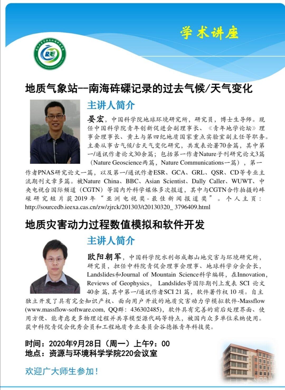 晏宏研究员和欧阳朝军研究员的讲座通知