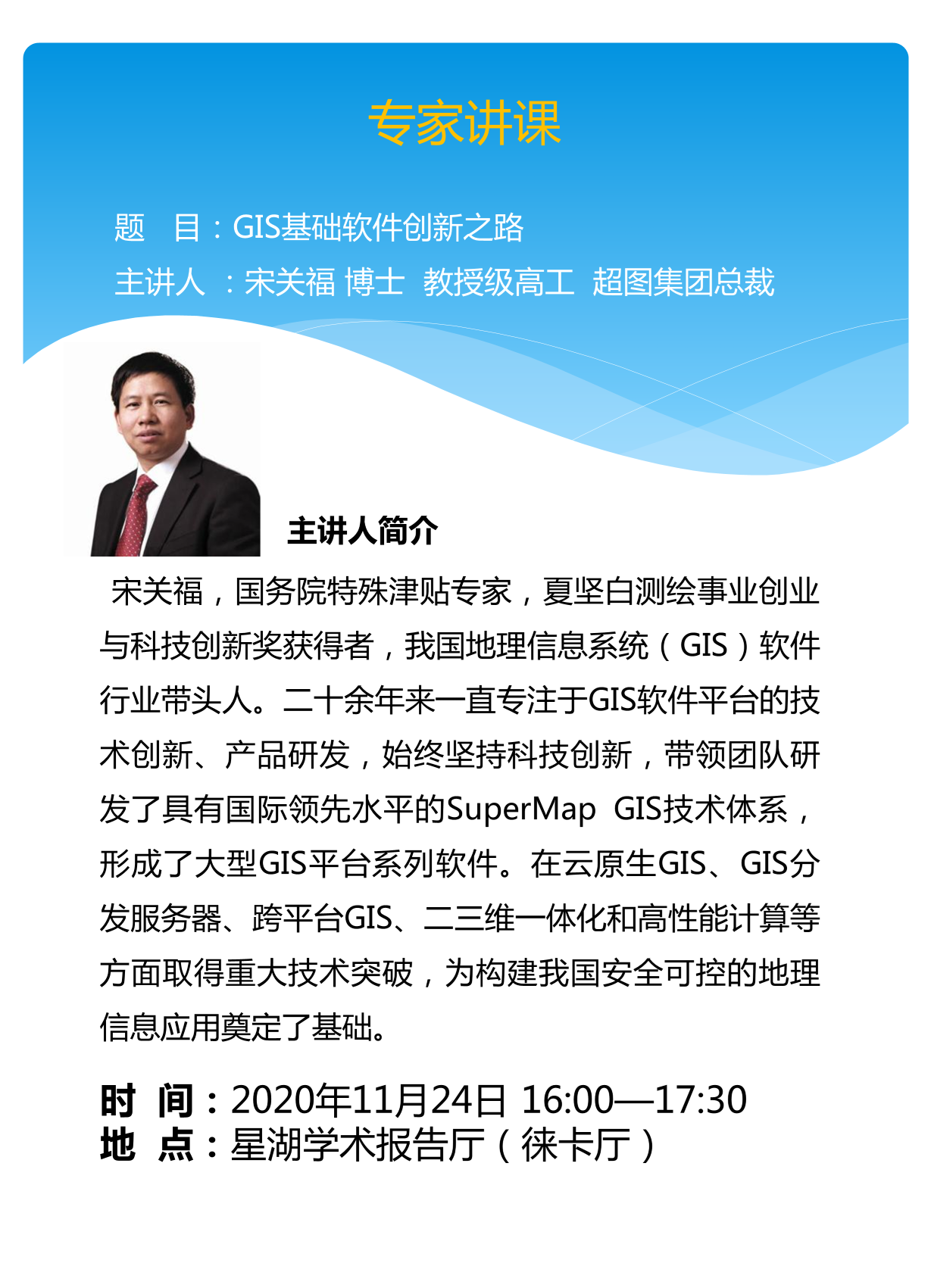 11月24日 超图集团总裁宋关福博士:GIS基础软件创新之路