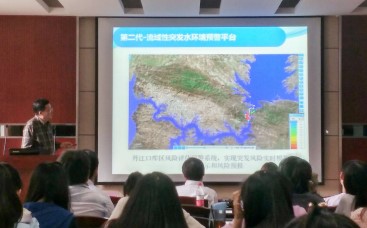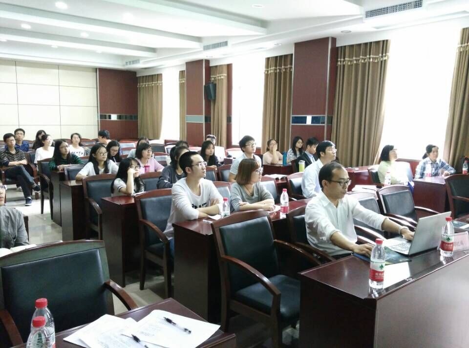 张万顺教授主要讲了流域环境风险预警研究。他从水污染的现状与损失、风险预警及其系统发展、模型技术体系和实例以及未来模型技术的发展趋势为我们讲解了这种模型技术。游志雄教授在日本深造了十余年,他主要讲述了如何用聚乙烯吡啶多孔树脂将水油混合物中的油富集起来,这也是他在日本做的主要工作之一。游老师从树脂的合成、树脂在实验室中的应用到最后投入到工业生产中为大家详细讲述了他的研究工作。邓红兵副教授在开讲前首先拿出一个静电纺丝仪为大家讲述静电纺丝是如何工作的,将大家的兴趣瞬间吸引,紧接着他讲解了静电纺丝的原理以及在染料敏化太阳能电池和负载粮酒酵母的多层夹心状纳米纤维膜用于去除低浓度高毒性重金属中的应用。在提问环节,同学们对于自己感兴趣的研究方向进行了提问,老师们也耐心解答了同学们的问题,博得了同学的阵阵掌声。