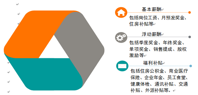货币化激励包括三大部分:基本薪酬、浮动薪酬和福利补贴。