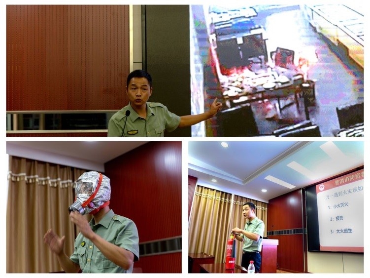 本次活动邀请武汉市普消消防咨询服务中心刘赛教官作“消防专题知识培训”和常见消防器材使用方法,现场操练。