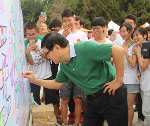 9月6日是学校2016级新生入学报到的第一天,2016年迎新工作进入现场阶段。今年的迎新在新建成投入使用的信息学部图书馆门前广场进行。学院特别为新生表达入校之情,制作了“缘聚资环,共绘珞珈”的手绘板,受到了学生和家长的欢迎。校长李晓红先后两次来到学院迎新现场,并应邀用蜡笔为一朵花瓣增色,与新生一起共绘“珞珈”。