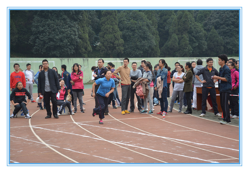 比赛当天,场地湿漉,天气阴冷。但冬雨挡不住拼搏的汗水,冷风扑不灭助威的热情:学院运动员奋勇拼搏,到场老师加油呐喊,后勤保障人员细致的服务,赛场上呈现一片活跃与欢快的气氛。赛场佳绩频传,学院环工系王祖武老师在男子中年组立定跳远的比赛中,以2.91米的成绩远超上届运动会2.80米的学校记录;实验中心的王乐辉老师在男子中年组1500米比赛中以5′20″07的成绩打破了上届运动会由他本人创造的5′29″73的学校记录。沸腾的运动场上,老师们灿烂的笑脸,也许身体不算强壮,也许脊背已经略弯,但他们风采丝毫未减,因为拼搏属于每个年轻的心房。