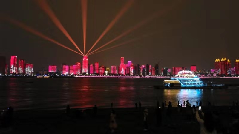 大家漫步江滩上,赏景拍照,交流感悟。夜幕降临,长江二桥索桥灯光首先亮起鲜艳的五星红旗,随之而来的数字从10、20依次闪动到70,大楼动画灯光依次亮起“站起来、富起来、强起来”,老同志们不约而同也激动地跟着喊起来。灯光秀围绕“国风楚韵、浩荡长歌、辉煌时代”三个主题,涵盖庆祝新中国成立70周年、军运会、楚文化等元素依次展开。有位老教授表示,距离他上一次来汉口时间十多年了,如今的武汉发展之快超出他的想象。新中国成立70年来,武汉长江大桥从第一座修到第十座,武汉长江大桥在1957年通车,是新中国成立后在长江上修建的第一座公铁两用桥,前不久刚通车的武汉杨泗港长江大桥是武汉市长江上的第十座长江大桥。武汉每天都不一样,长江两岸鳞次栉比的高楼大厦闪动着的灯光,让武汉这座城市美丽动人、魅力四射,他感到非常高兴。