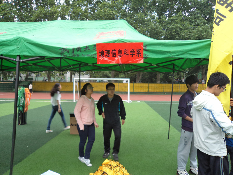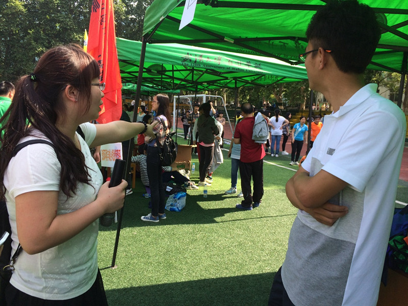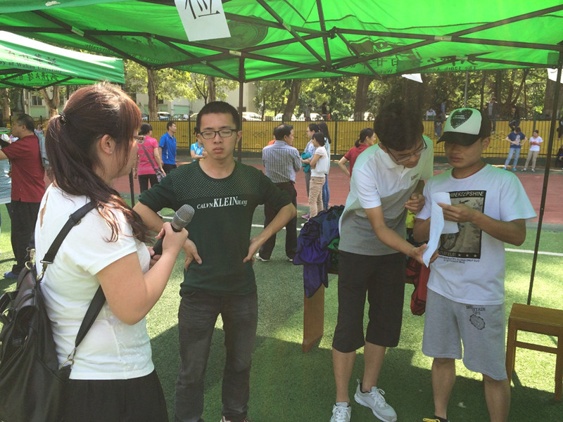 1.联络人赛前工作。各系联络人集中,负责人正通知一些注意事项。尽管烈日炎炎,但联络人都很认真负责,没有马虎怠工,仔细研究运动会时间表。