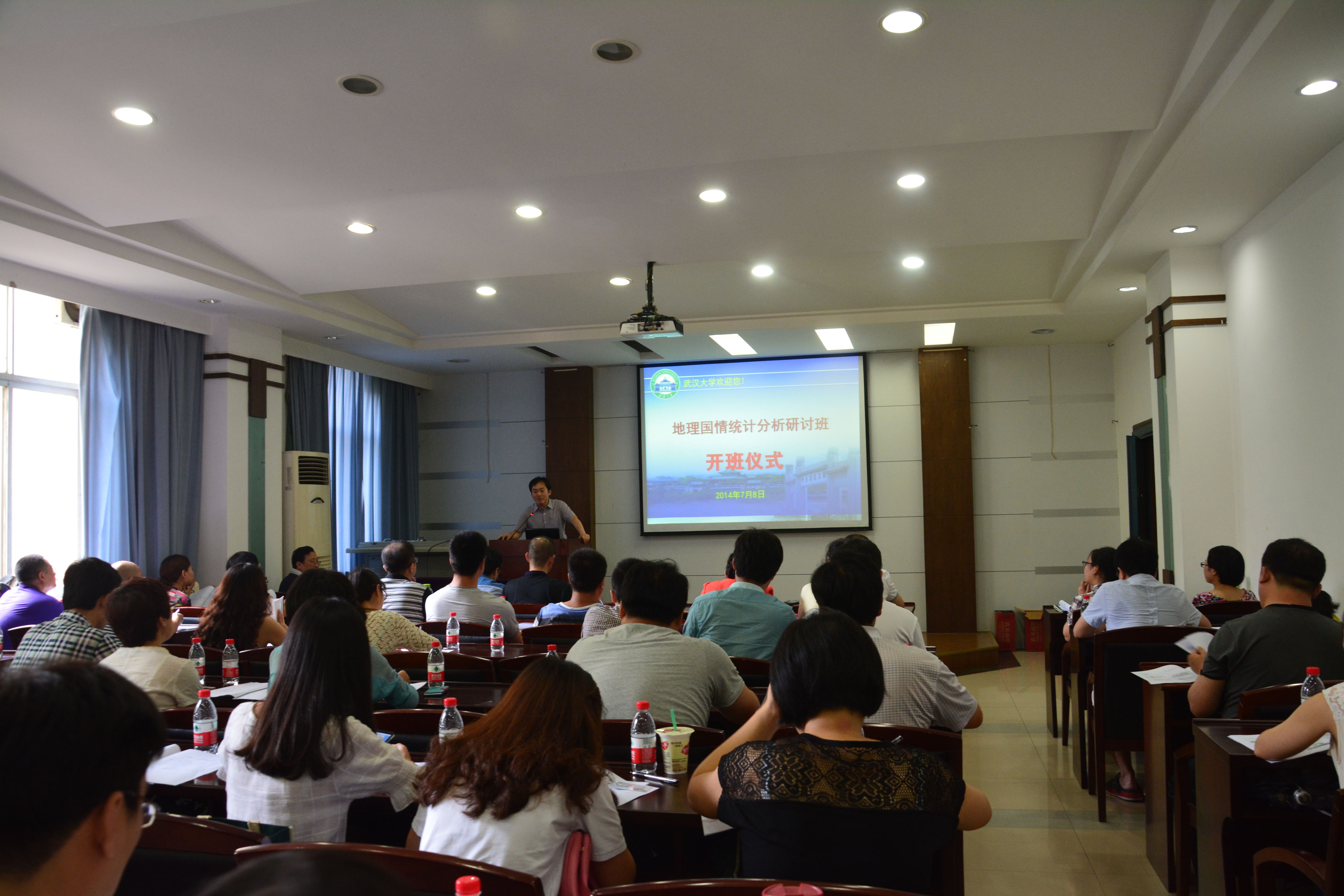 2014年7月8日—11日,国家测绘地理信息局继续教育中心与91沈先生 联合成功举办了“地理国情统计分析”研讨班。来自北京、黑龙江、吉林、辽宁、河北、甘肃、青海、江苏、浙江、江西、安徽、湖北、四川、重庆、云南等地测绘相关单位、高校和企业的学员共计64人。学院院长刘耀林教授和副院长杜清运教授亲自授课,开班仪式上副院长雷起宏受院长委托代表学院讲话。