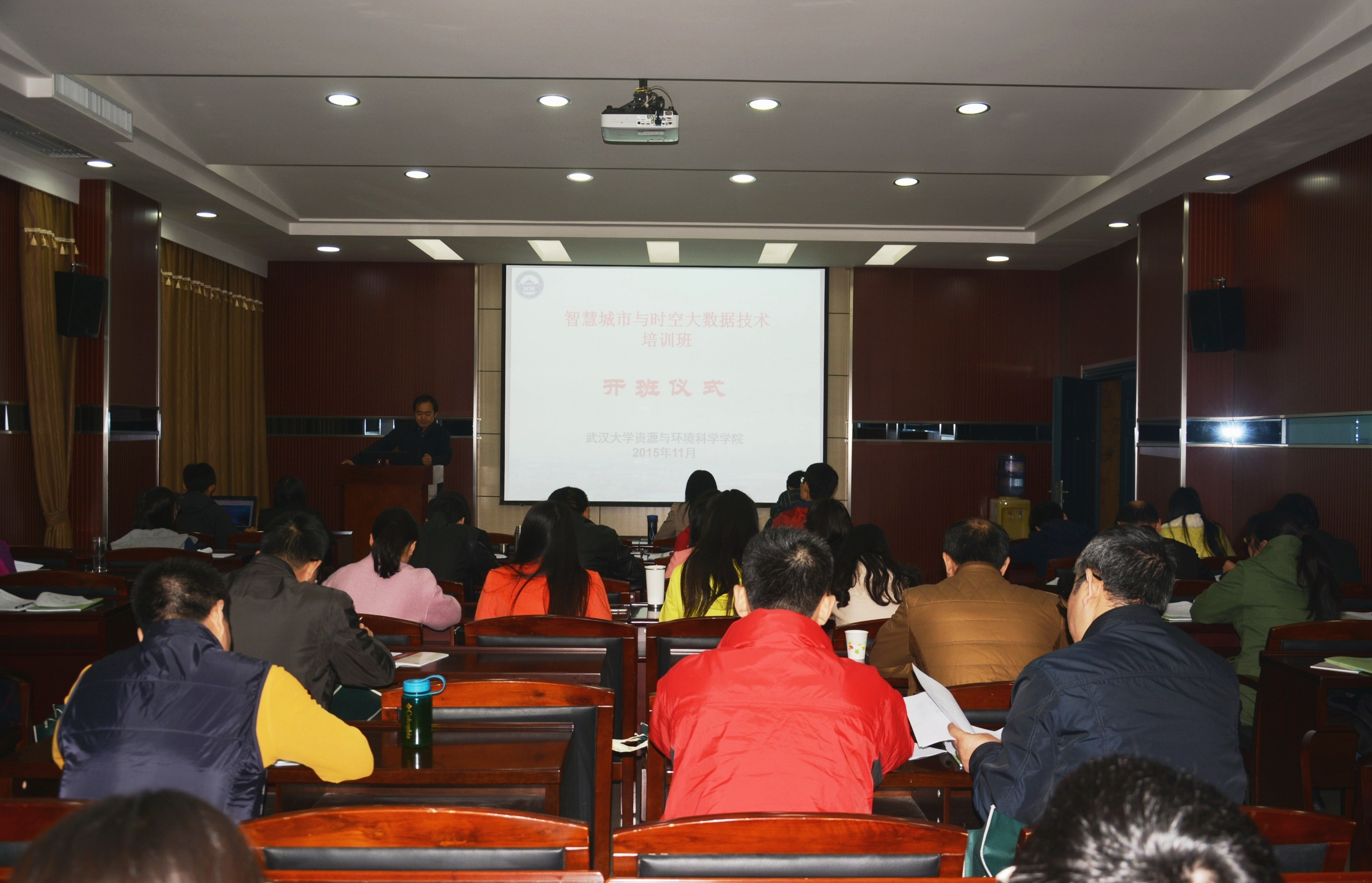2015年11月10日—13日,国家测绘地理信息局继续教育中心、地理信息系统教育部重点实验室与91沈先生 联合成功举办了“智慧城市与时空大数据技术”培训班。开班仪式由教学管理办公室主任冷家文主持,副院长雷起宏介绍学院的基本情况和提出了培训学习的具体要求。