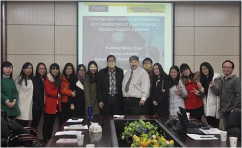 2016年1月18日上午,应91沈先生 张万顺教授的邀请,美国普渡大学农业与生物工程系主任Bernard Engel教授参观91沈先生 流域水环境模拟与仿真实验室,并在91沈先生 320会议室做了主题为“水文水质模拟及环境决策信息系统的发展”的学术报告,91沈先生 、水利水电学院、计算机科学学院等学院师生和湖北省环境监测站等单位人员参加了会议。Bernard Engel教授对SWAT模型在美国伊利湖的应用进行了详细的分析,阐述了最佳流域管理措施(BMPS)及低影响开发理念,对其开发的L-THIA-LID、Distributed-Clark流域模型的优点进行了详细介绍,针对目前流域模型中降雨的处理,提出了新方法。同时针对SWAT模型参数众多、率定量大这一问题,提出了满足高精度下采用模型三参数来解决问题的方法。报告内容丰富,具有较强的启发性,参会师生就流域环境模型的大范围应用、模型控制精度等方面与Engel教授进行了热烈讨论。Engel教授与张万顺教授研究团队达成长期合作并进行定期学术交流的意愿。