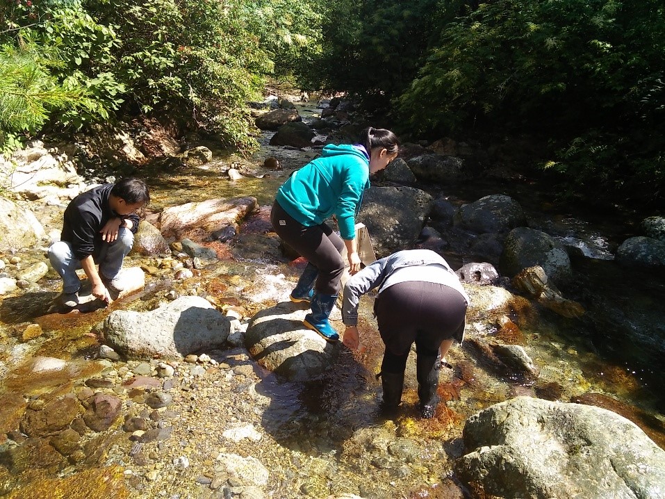 在溪流里采集底栖生物
