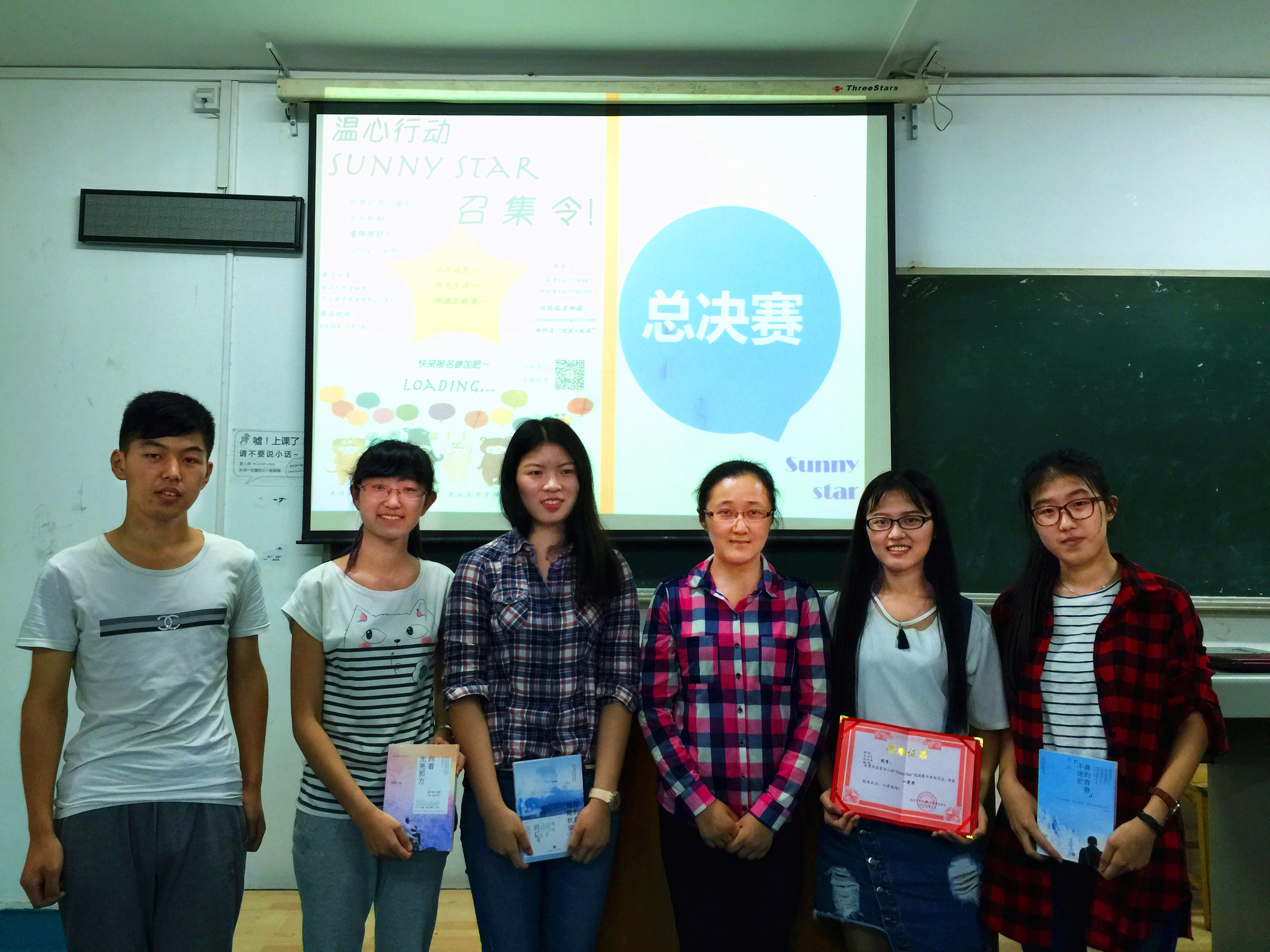 2016年5月21日晚18:30,在信息学部1-304教室,校“温心行动”之资环院第七届“Sunny Star”选拔赛的决赛拉开帷幕。该选拔赛由武大资环院心理健康与互助协会举办。出席本次活动的嘉宾评委有武大资环院心协指导老师马丽华,第四届“Sunny Star”冠军冯璐玮,校珞珈心源社长秦德贤,院心协会长高蒙迪,参加本次活动的还有各组选手、大众评委以及院心协成员。