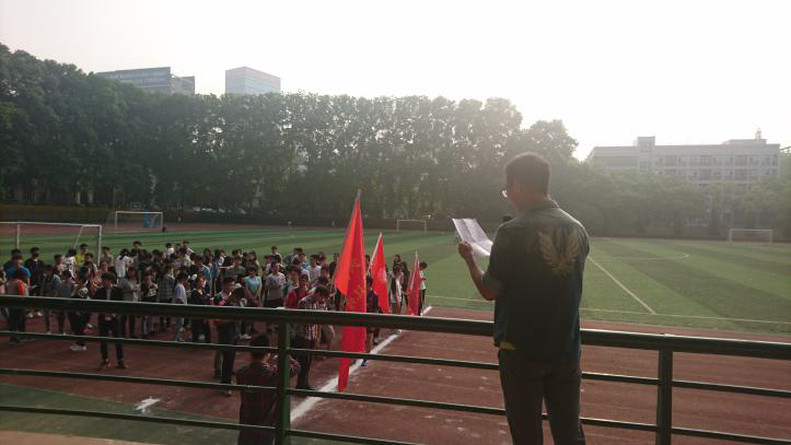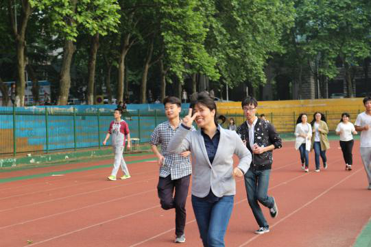 同学们的热情让操场上充满了青春的活力。院学生工作办公室主任徐鹏老师也忍不住加入了跑步的队伍。