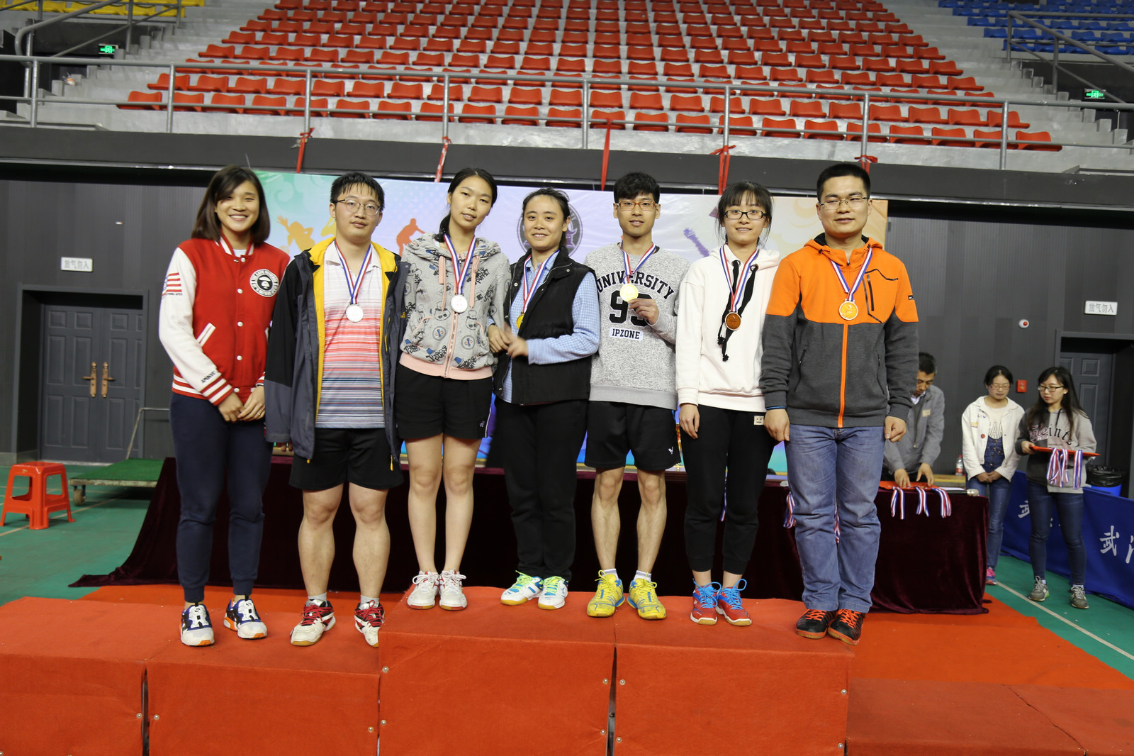 91沈先生 参赛队由本科生7人、研究生8人(黄俊兴、詹璇、沈瑶、杨智焱、乔卫、李霄、周哲豪、杨典明)和2名校体育部分配的体育特长生(汤哲诚、许昕)组成。混合团体赛中,91沈先生 派出了以7名研究生为主体的参赛阵容,另有2名体育特长生倾情助力,共同拼搏厮杀,最终取得第四名的好成绩。黄俊兴、詹璇在团体赛和单项赛连续作战的压力下,默契配合,顽强拼搏,一路过关斩将,最终获得普通单项组混合双打冠军!同时,汤哲诚在高水平单项组比赛中,获得男子单打冠军。