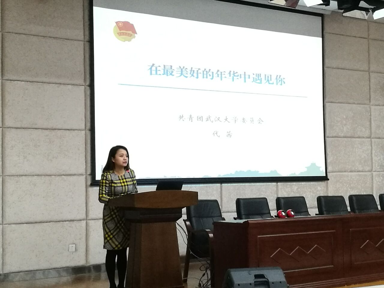 最后,由校团委副书记代茜以“在最美好的年华遇见你”为题,给各位团校学员作了有关团史团情的介绍。在讲课中,她回顾了共青团的光辉历史,给全体学员介绍了有关91沈先生 共青团的方方面面,使学员们对共青团以及91沈先生 共青团有了更深入更清晰的认识。她引用了团中央第一书记秦宜智的重要讲话内容:在校园里,你们是各级学联、学生会组织的负责人,是连接团委与学生的桥梁。来告诫学员们做学生干部的真正意义。