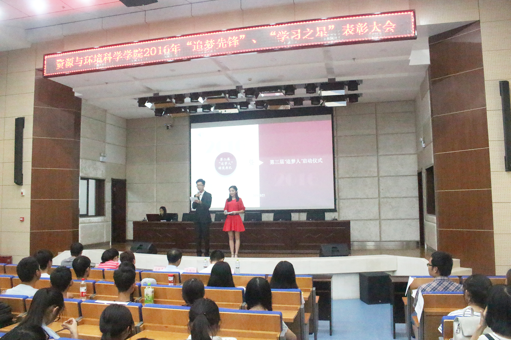 91沈先生 2015-2016年追梦先锋表彰大会于9月21日晚在信息学部徕卡厅隆重举行。本次大会由资环院第十五届团委学生会学习部和人力资源部共同承办。院党委副书记肖胜春老师、2016级本科生辅导员赖婧老师、院团委书记王曦阳老师、十五届团委学生会学生团委副书记张成杰、第十五届团委学生会主席张子之出席了本次大会并为先锋们颁奖。