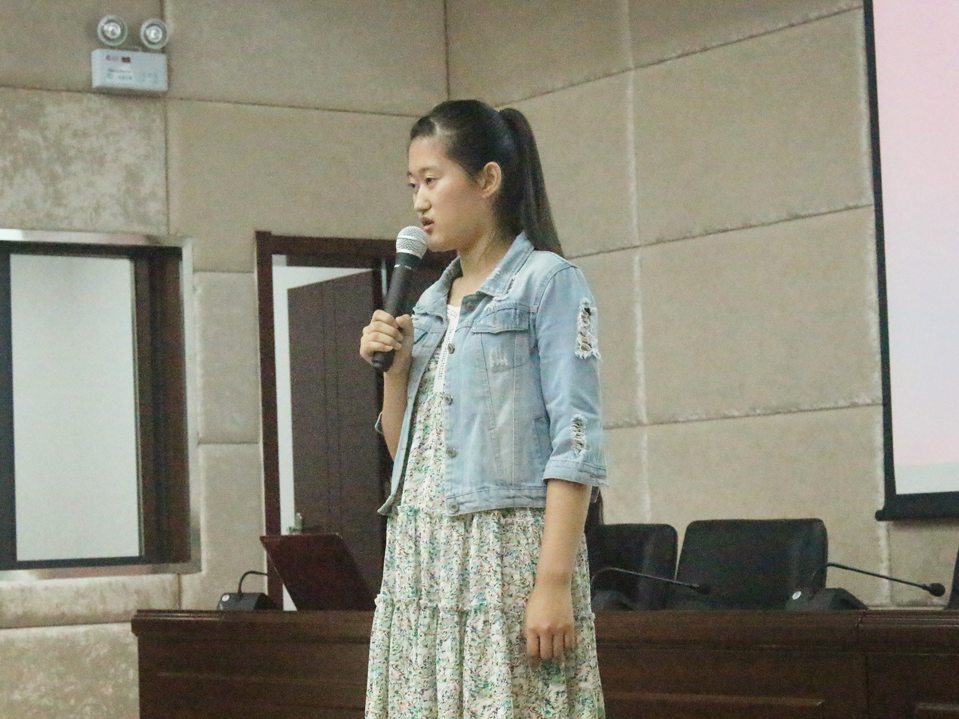 之后分享经验的是“学霸养成梦”词汇达人杜颖。杜颖同学用流畅的英文介绍了自己一年来坚持词汇学习的经历,也为大家分享了英语学习的有效方法。英语词汇的学习离不开日积月累,再加上有效可行的方法,就能够达到事半功倍的效果。