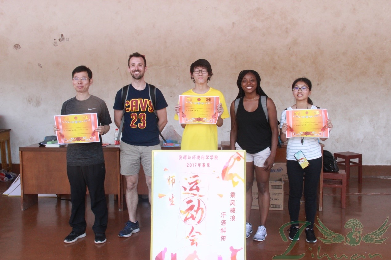 中午十二点十分左右,运动会各项目已全部结束,在主席台上举行了最为激动人心的领奖仪式。环境工程系卫冕了团体冠军。运动会已经结束,但资环院师生们在运动会上结下的情谊却不会轻易消散,学院前进的步伐也不会停止。