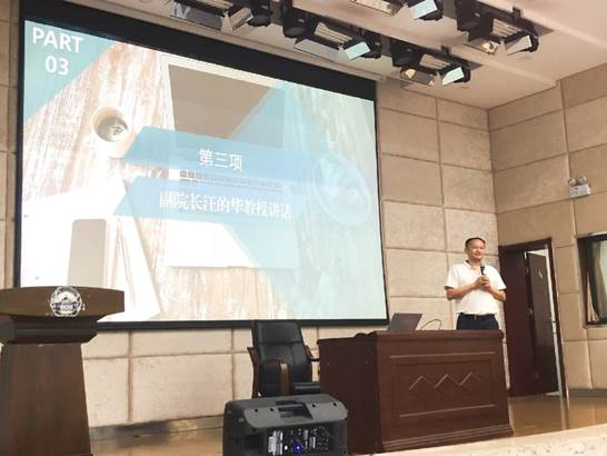 接下来,副院长汪的华教授发表了对研究生新同学的寄语。他从作为研究生导师的角度提出注重交流合作的重要性,在学术前行的路上让思想的火花碰撞出更多灵感。希望大家在资环这个大家庭里快乐学习、全面提升。