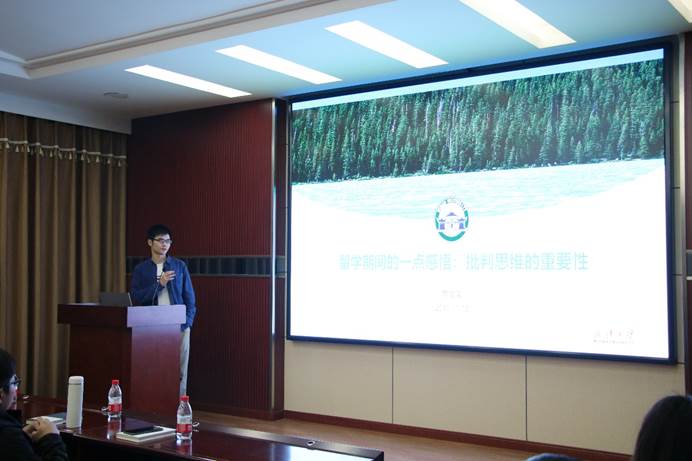 资源环境监测与规划专业的黄俊龙,来自多伦多大学,带来的报告主题是“批判思考的重要性”。他提出,一个研究不可能解决学科的所有的问题,因此任何研究都有局限性和不足,所以光学习不批判(拿来主义),难以发现新的问题。我们可以从理论和假说方面进行批判,以及模型的适用性、重要因素是否考虑,对结果和结论进行批判,是否符合常理。如果不符合常理,是不是给出了足够的数据的支撑。并以“全球森林修复潜力”这篇文章进行思考,提出自己的观点,认为原作者的观点难以支撑研究论断。最后提出,发现问题,思考如何解决问题,最后再解决问题。思考加批判,我们就能发现新的问题。