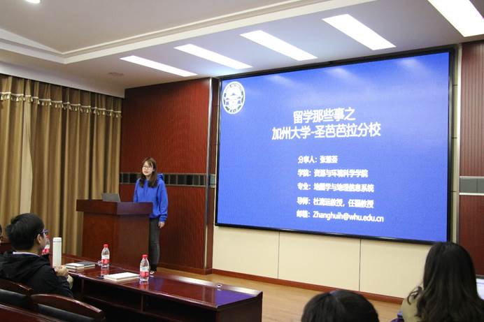 地图学与地理信息系统专业的张慧荟,留学的学校是加州大学圣巴巴拉分校。她为我们带来的报告主题是“留学申请技巧和留学生活”,从CSC申请中应该注意的事项,例如如何选学校、如何与导师联系、如何申请材料等需要注意的细节出发,为我们介绍留学申请技巧以及自己的留学生活经验分享。在申请学校前,要有一份好的简历。联系导师的过程是一个双向的过程,好的英文简历会帮助你更好地拿到offer。CSC的联系要乘早,9月份就要开始,因为国外的机位和办公室都是有限的。要有较好的套磁信,拒绝千篇一律的模板。即使没有雅思成绩,也要保持流利的口语,外国导师非常看重中国留学生的口语,雅思相比于托福,对日常生活用语的帮助比较快,可以更好地融入国外的实验室。与你的外导保持联络,汇报近期的工作。阅读导师近几年的SCI,近期想要研究的方向。根据他的研究方向进行自己的思考,并写一些自己的未来计划。在节日的时候,有礼貌的发邮件祝贺导师,因为在你联系的同时,很多其它的学生也会联系你的导师,如果你不及时汇报你自己的工作,可能导师会遗忘你,甚至放你的鸽子。相比于本科生要交一年几十万的学费才能上课,申请了CSC之后,你将享有国外全部课程的上课机会。因此在空余时间,可以先给课程的老师发邮件,然后蹭课。在国外院校访学的时候,可以下载许多的正版软件甚至原版的电子数据,充分地利用国外资源。作为留学生,要认真对待科研,如果你的表现很好,那么导师会对这个学校的印象很好,所以要把这个口碑传承下去。多参加校园活动(各种节日庆祝活动),多和实验室的国外学生交流,多看看外面的世界。而不是只和中国人做朋友,对待口语和听力没有任何的提高。