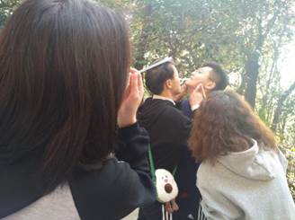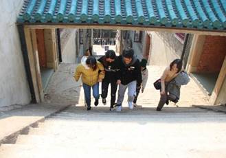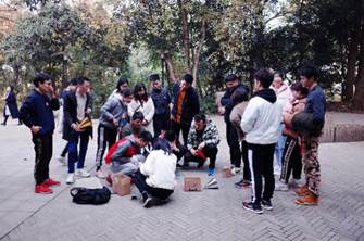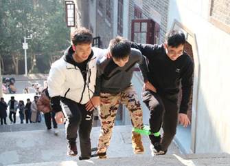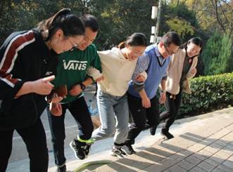 第6站:樱花大道(齐力冲顶——三人四足,登樱顶),活动过程中,参赛成员相互配合,勇往直前,齐力冲顶,展现了珞珈学子不畏困难,奋勇争先的良好风貌。