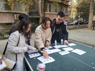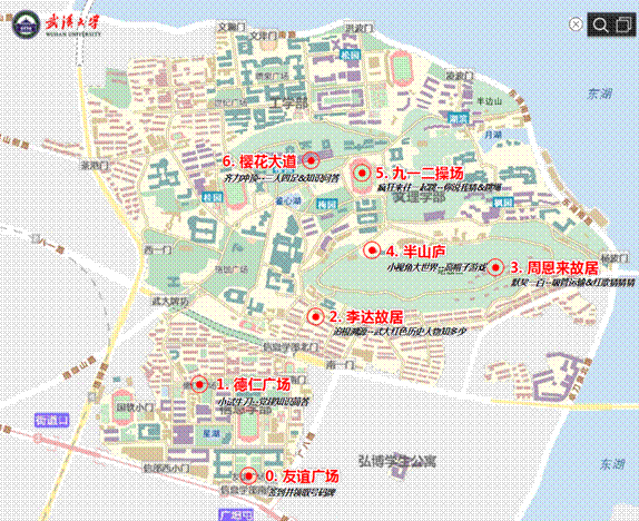 第1站:德仁广场(小试牛刀——党建知识问答),参赛队伍跑至工作人员处打卡,完成工作人员事先准备好的有关党章、武大红色历史以及党的十九届四中全会等会议精神相关的考察题目后方可前往站点2。