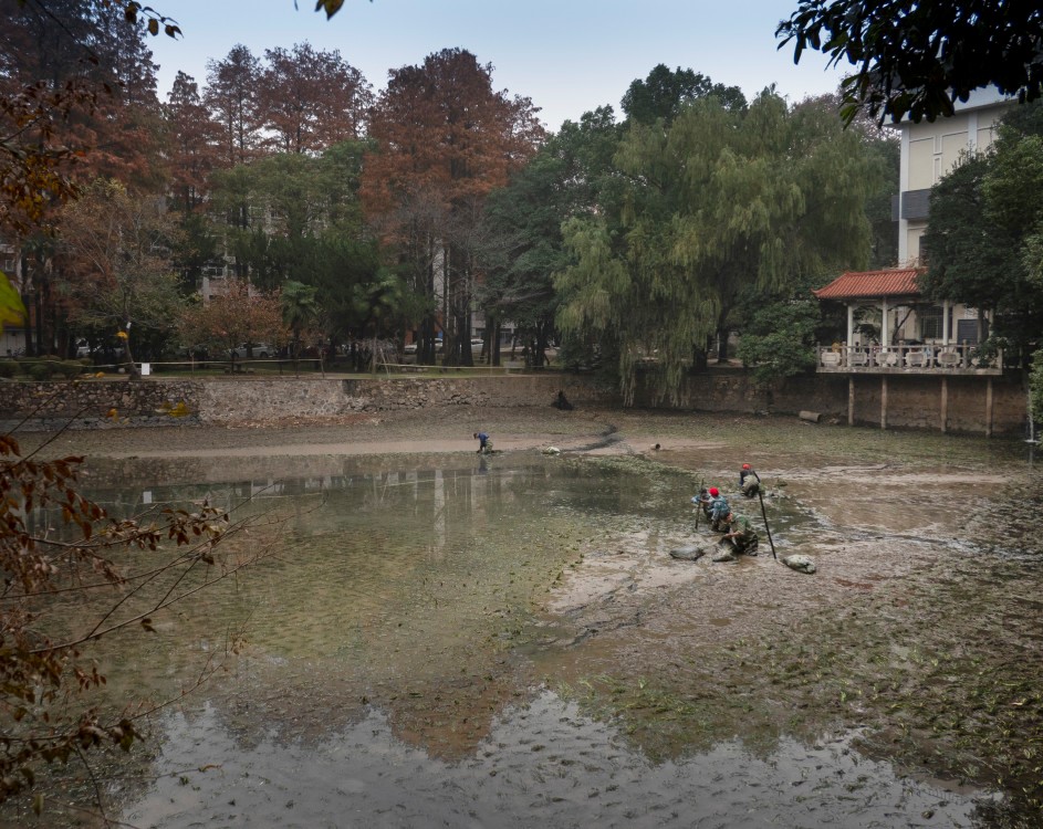 自11月25日起,在学校后勤保障部的支持下,星湖生态修复工程正式启动,同时学校后勤保障部配合进行了地下污水截流及坍塌湖岸的修缮工作。