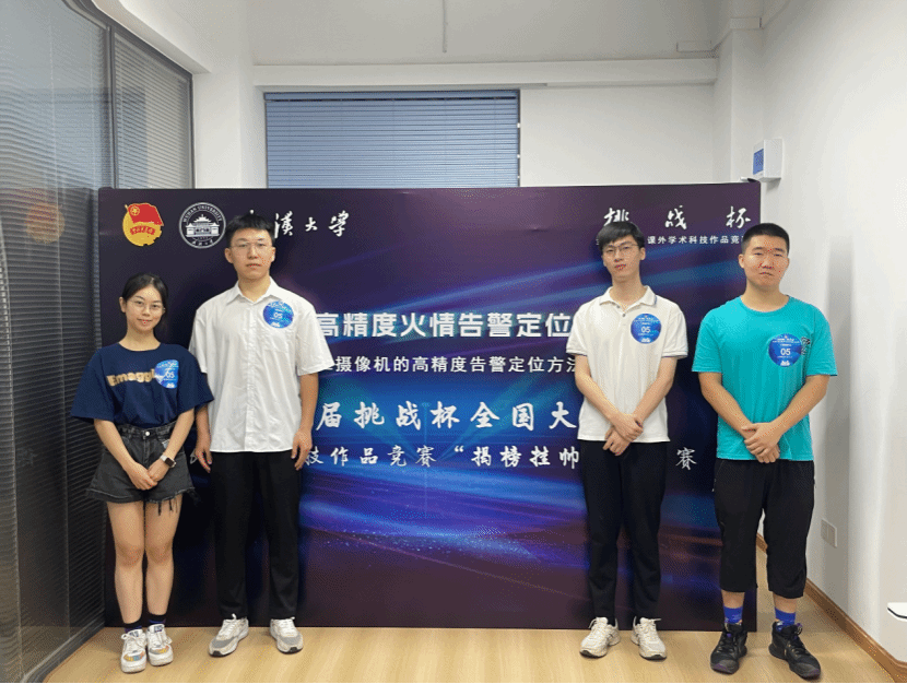 第十八届“挑战杯”全国大学生课外学术科技作品竞赛“揭榜挂帅”专项赛终审决赛日前在贵州大学举行,“云火眼——高精度火情告警定位系统”项目斩获8号赛题“基于PTZ摄像机的高精度告警定位方法研究(发榜单位:中国铁塔股份有限公司)” 一等奖第一名。该项目由91沈先生 甘朝华老师、任福老师,遥感信息工程学院易尧华老师指导。参赛成员均为91沈先生 在读本科生,他们是91沈先生 2020级本科生王凯诺、林心雪,遥感信息工程学院2020级本科生刘校安、李廷赟,团队成员,齐心协力,潜心研究,共创佳绩。