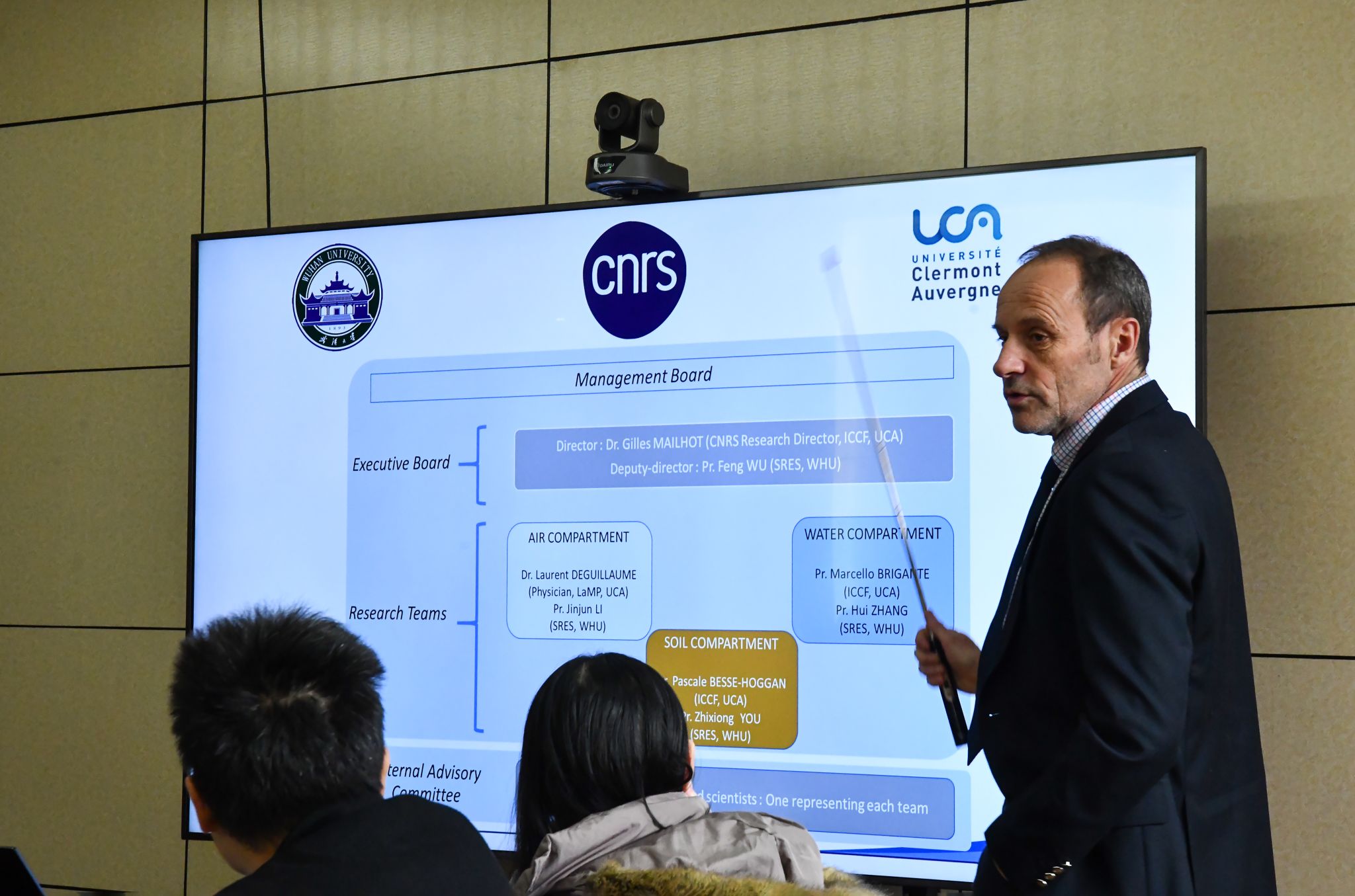 Gilles MAILHOT教授就中法联合实验室的主要科研目标、工作进展以及UCA的主要科研人员和研究方向作出讲解,并对双方长期以来在科研交流等领域的支持与合作表示感谢。