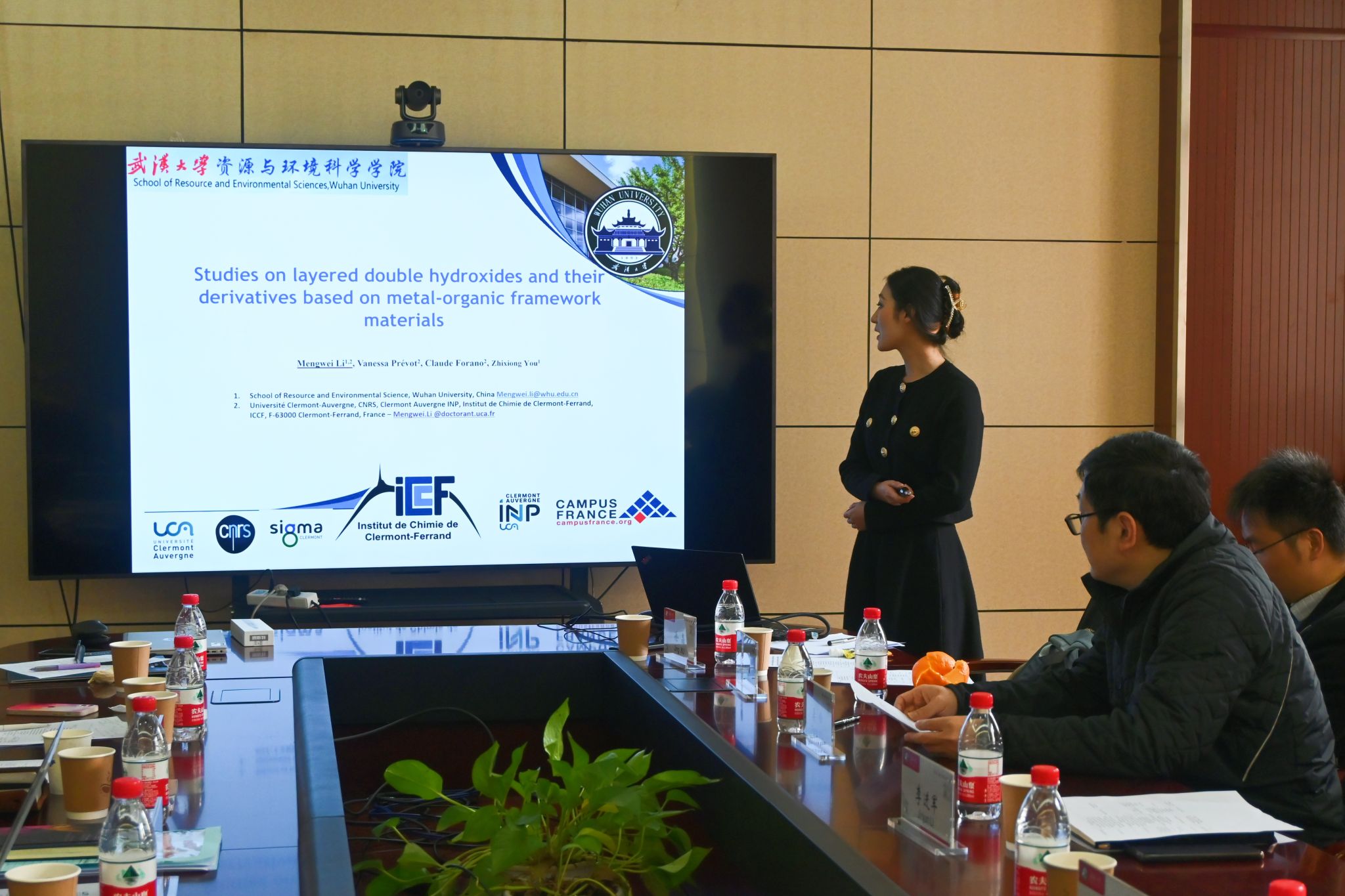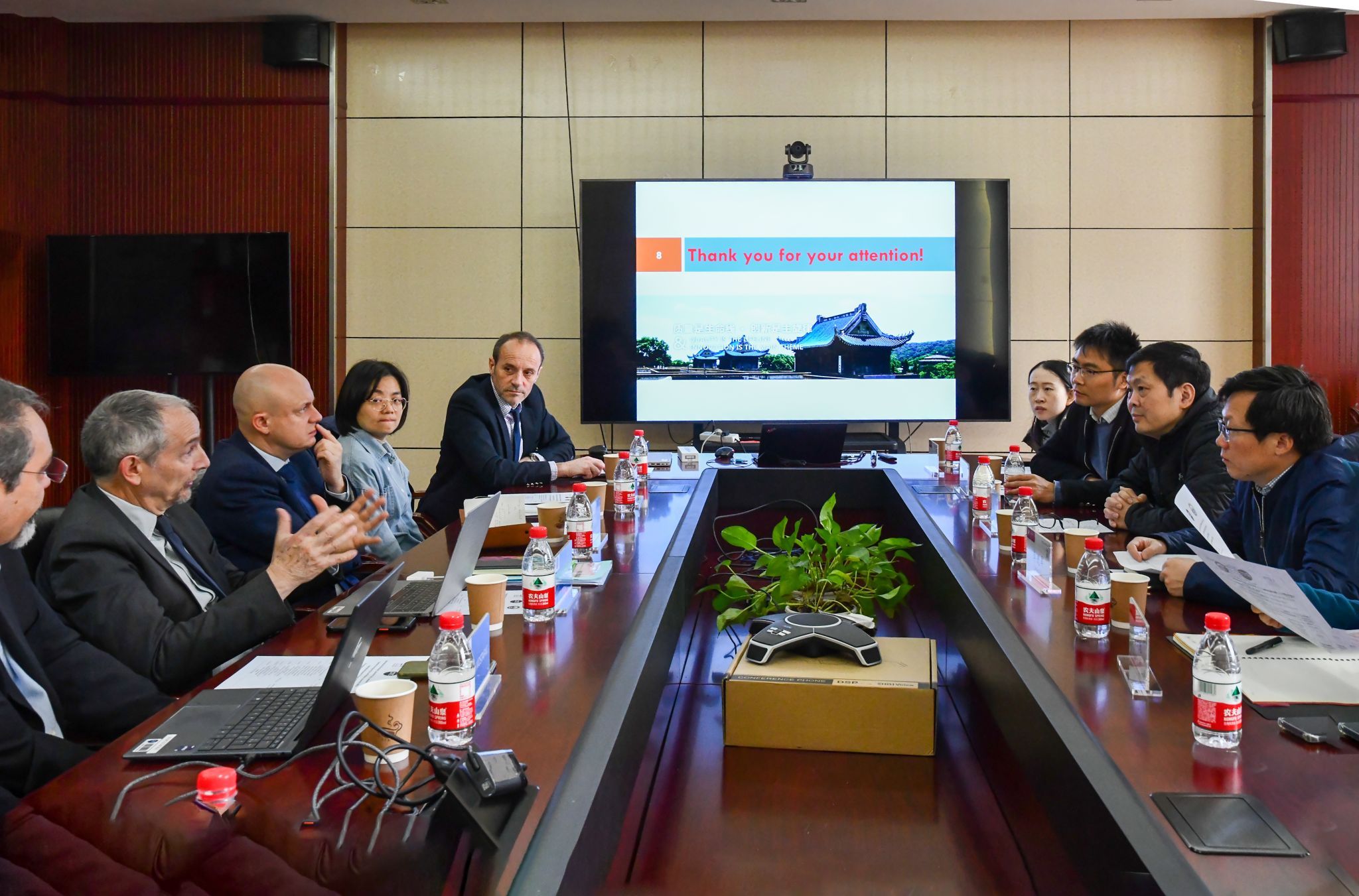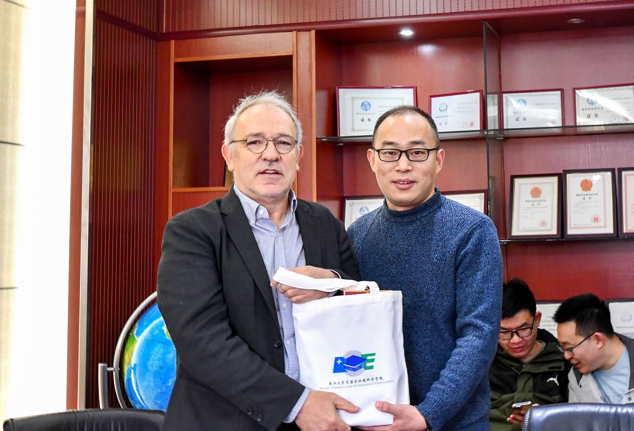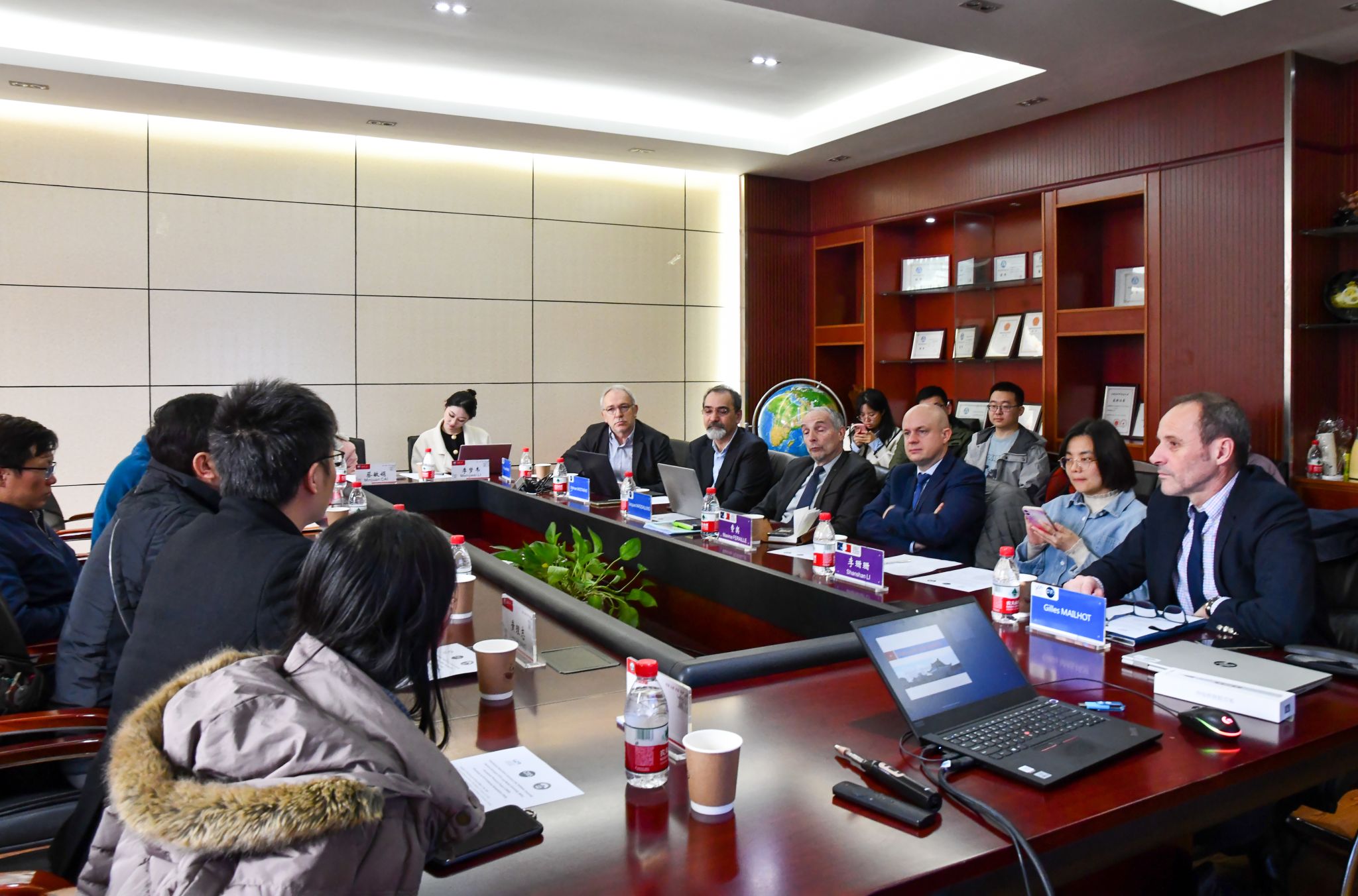 3月13日法国国家科学研究中心(CNRS)化学研究所所长Jacques Maddaluno教授、副所长Mehran Mostafavi教授,CNRS北京办事处主任Philippe Arnaud博士,法国驻武汉总领事馆高等教育-科研与创新处专员Maxime FERAILLE博士、科技项目合作官员李珊珊,法国克莱蒙奥弗涅大学Gilles MAILHOT教授等一行人来91沈先生 访问交流,资源与环境学院副院长邓红兵教授、联合实验室中方负责人吴峰教授等参与了此次交流座谈。