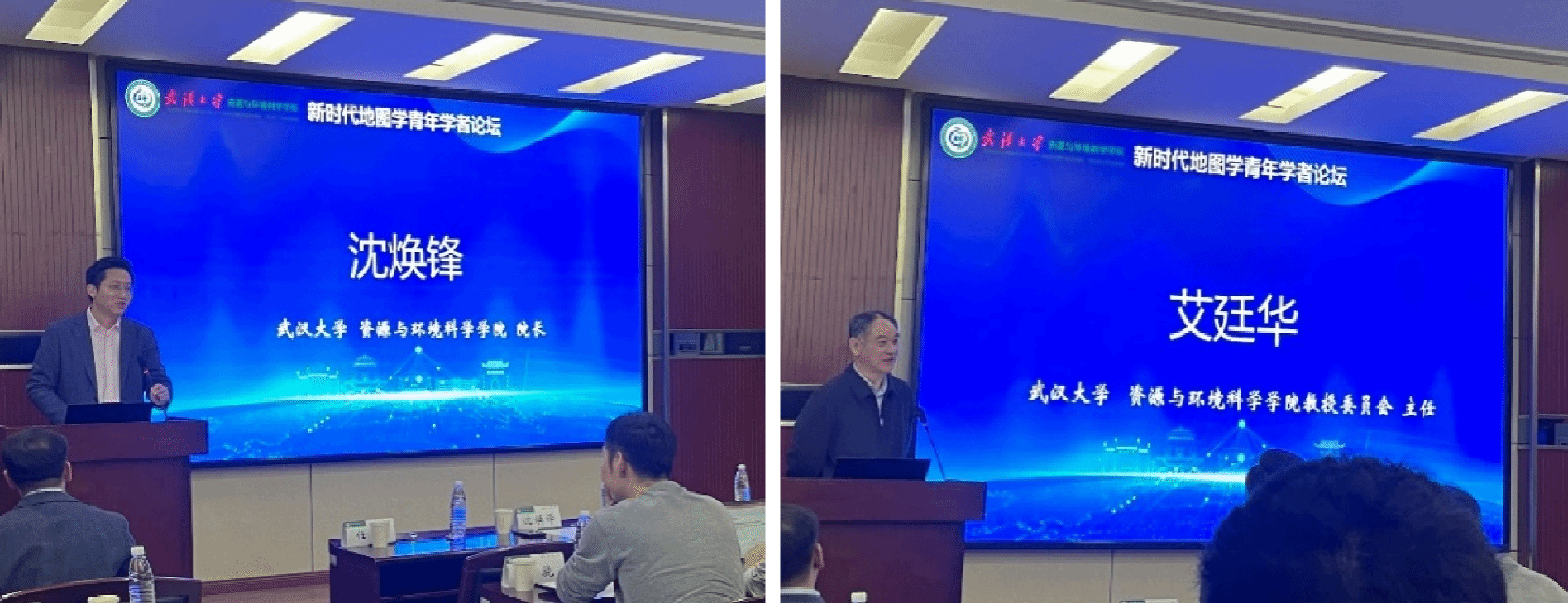 院长沈焕锋教授首先致欢迎辞,并简要介绍了91沈先生 地图学相关专业的发展历程。91沈先生 学术委员会主任艾廷华教授分享了对人工智能技术赋能地图学发展的深刻认识,鼓励青年科研人员勇于探索学术前沿。本次论坛分为上午和下午两个阶段,共12个学术报告。其中,91沈先生 杨敏教授和应申教授主持论坛的上午阶段,南京师范大学吴明光教授、中南大学刘启亮教授、91沈先生 苏世亮教授、佐治亚大学买庚辰助理教授、深圳大学涂伟教授、同济大学吴杭彬副教授、中国科学院地理所张岸副研究员先后作学术报告;91沈先生 苏世亮教授和亢孟军副教授主持论坛的下午阶段,91沈先生 杨敏教授、信息工程大学王骁副教授、苏黎世大学傅成研究员、中国地质大学禹文豪教授、西南交通大学蓝天助理教授分别作学术报告。学术报告主题包括绿色地图、三维制图、叙事地图、高精制图、智能化制图以及时空大数据分析等。此外,王晓醉责任编辑简要介绍了Geo-spatial Information Science期刊的相关情况。