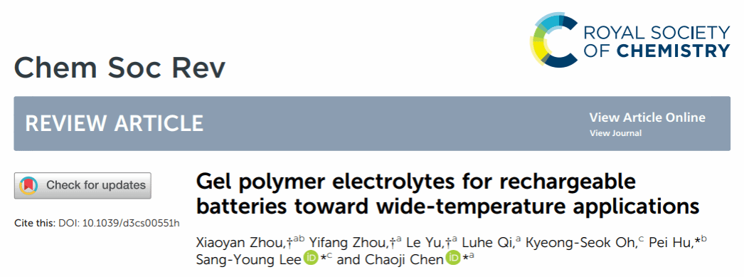 原文:Gel Polymer Electrolytes for Rechargeable Batteries toward Wide-Temperature Applications. Chem. Soc. Rev., 2024. (DOI: 10.1039/d3cs00551h)