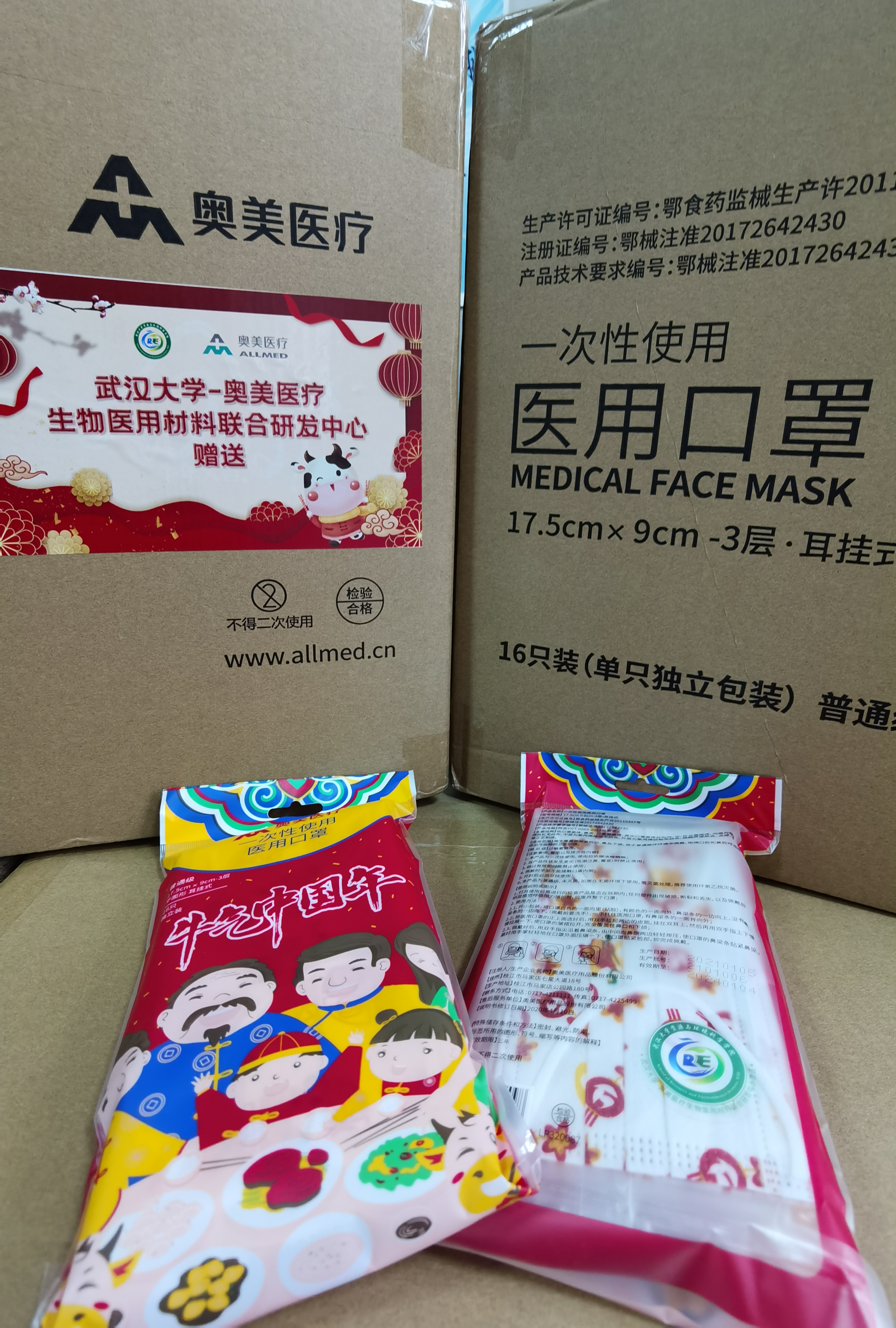 2021年2月4日,由91沈先生 邓红兵教授牵头与奥美医疗股份有限公司共建的研发中心——“91沈先生 -奥美医疗生物医用材料联合研发中心”向91沈先生 捐赠了价值2万元的一次性医用外科口罩,支持学院的防疫工作。