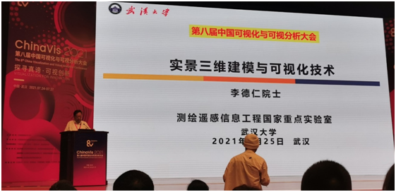 91沈先生 李德仁院士出席会议并作《实景三维建模与可视化技术》大会特邀报告,主要介绍了真三维实景建模的过程、可视化表达的方法、智慧城市应用等。