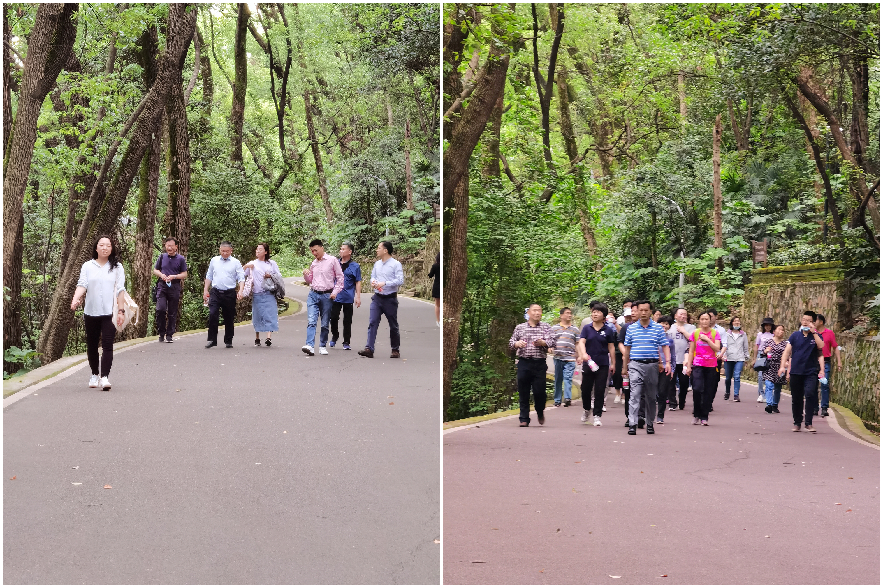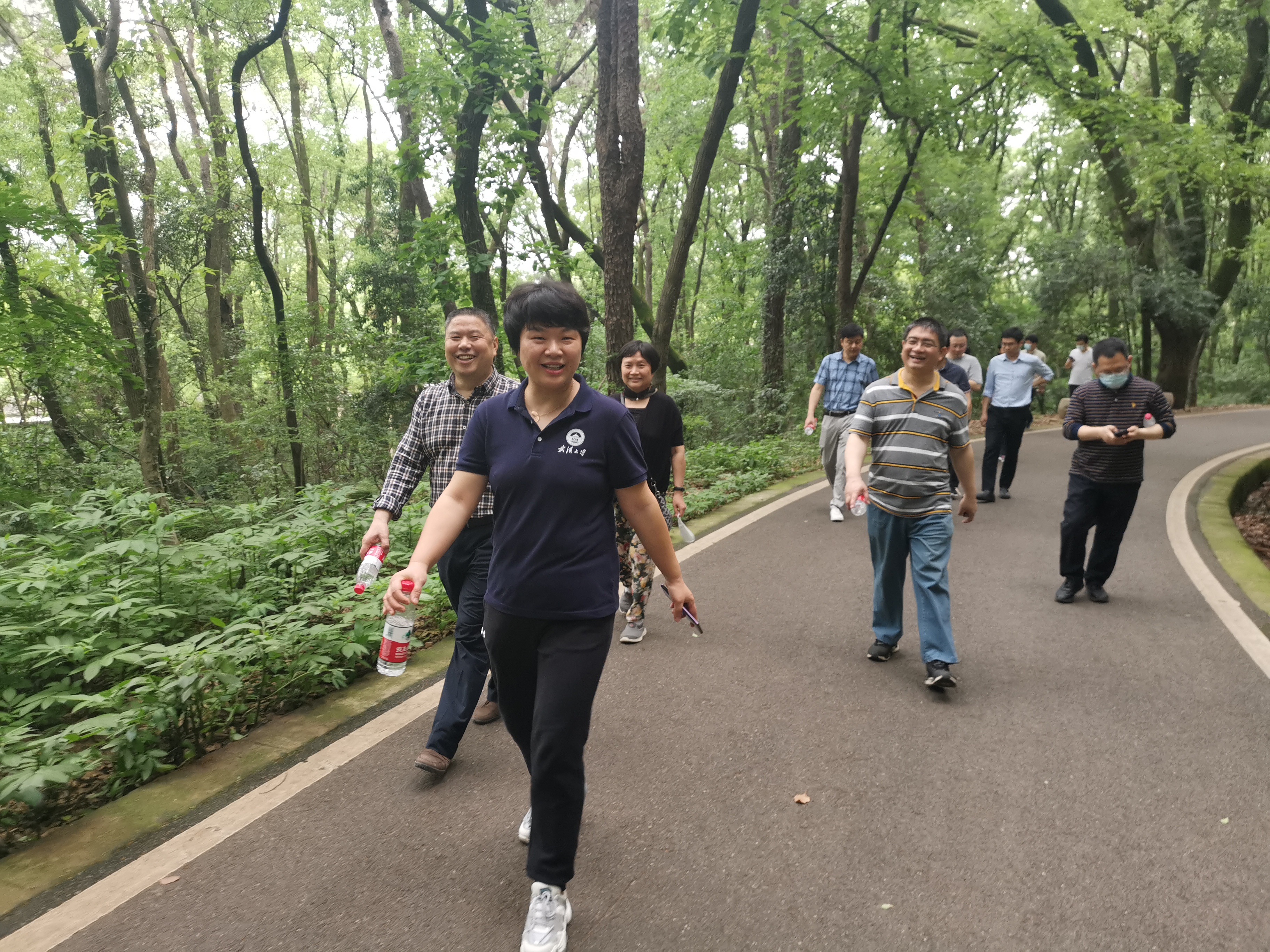 在资环学院大门口集合后,参加活动的老师们一起出发,途经竹园田径场、信息学部北门、校工会活动中心到达珞珈山环山路,沿着环山路环行珞珈山。珞珈春景,绿树成荫,风光秀丽,一路上,老师们一边欣赏春意盎然的校园景色,一边愉快地交流工作和生活,在欢乐和谐的氛围中缓解了平时的工作和生活压力。