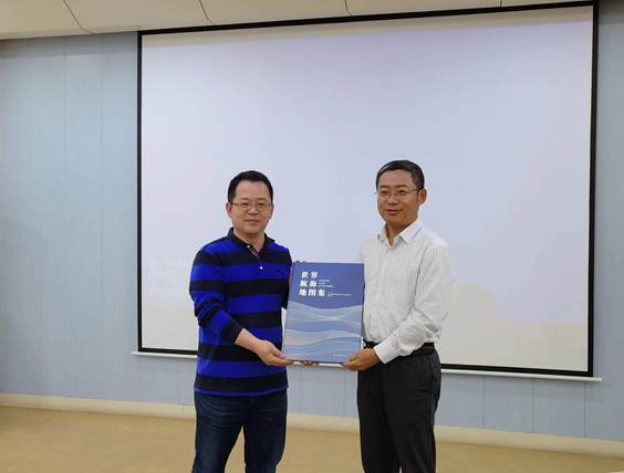 最后,任福副院长代表91沈先生 91沈先生 赠送了《世界航海地图集》,王明良副总经理代表中国交建对91沈先生 表达感谢。