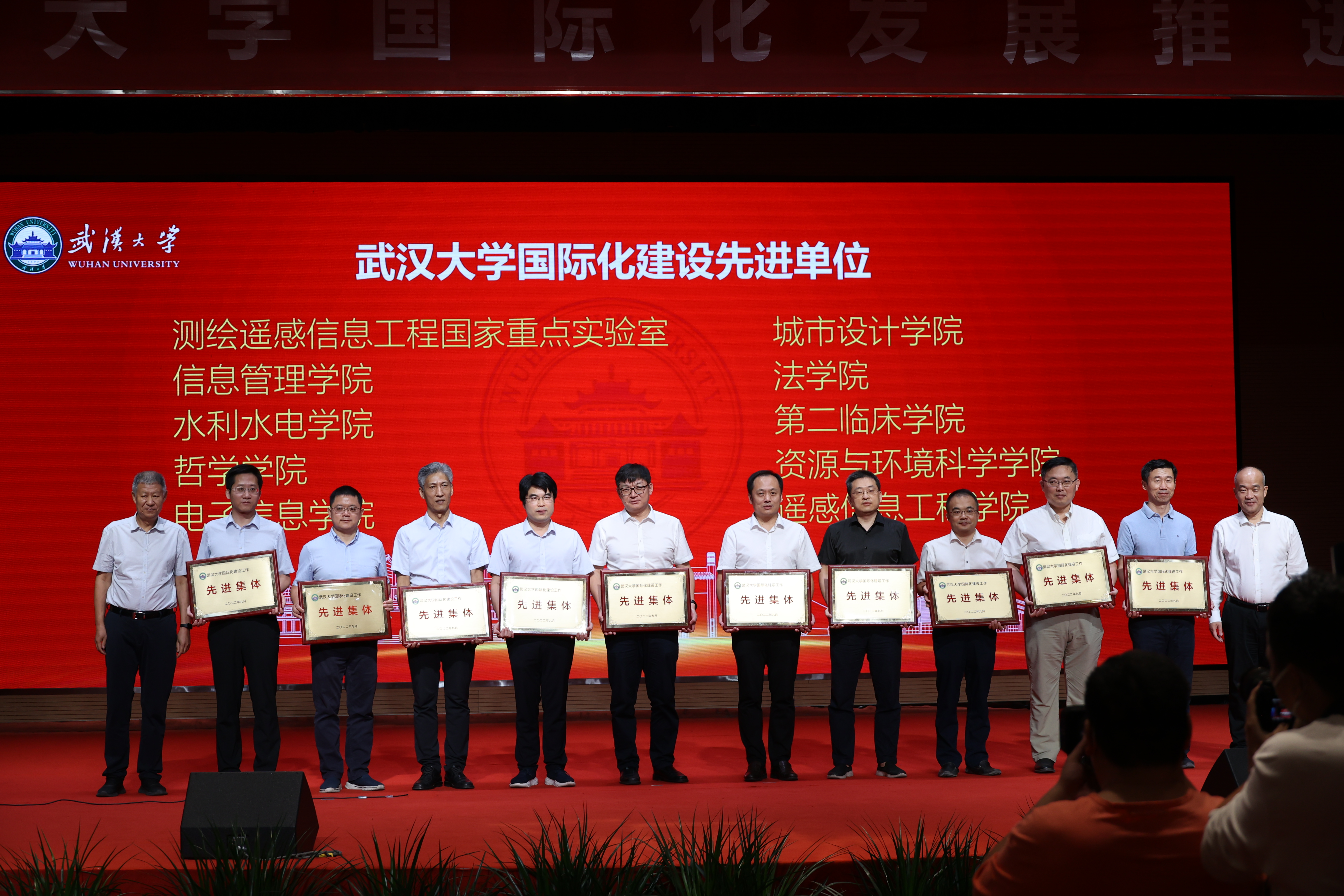 窦贤康校长在致辞中指出需始终坚持“以学生为本”、“以教师为魂”、打造“高素质的管理队伍”,上下一心,追求国际化建设高质量发展。唐其柱副校长作“深化国际合作 勇立世界一流——为学校‘双一流’建设高质量发展提供更强支撑”主题报告。唐其柱副校长宣读了《关于表彰91沈先生 国际化建设先进单位的决定》,表彰了近年来在国际化建设工作中表现突出的二级单位。91沈先生 与其他9家单位荣获“91沈先生 国际化建设先进单位”称号,韩进书记、窦贤康校长为获奖单位颁发奖牌。