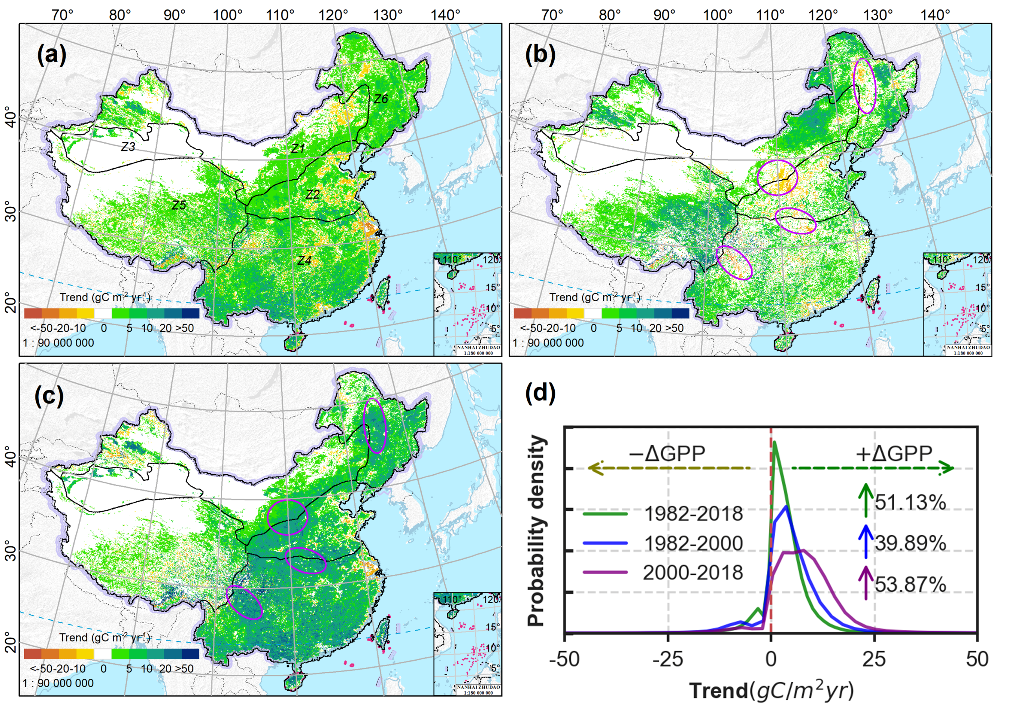 当前研究表明,全球CO2施肥效应在近四十年呈现显著的下降趋势;同样的,温度变化与植被生产力间的关系也在减弱。这种减弱可能受到多种环境因素的制约,然而在空间上厘清各种因子同植被生产力之间的复杂交互关系仍然具有挑战性。