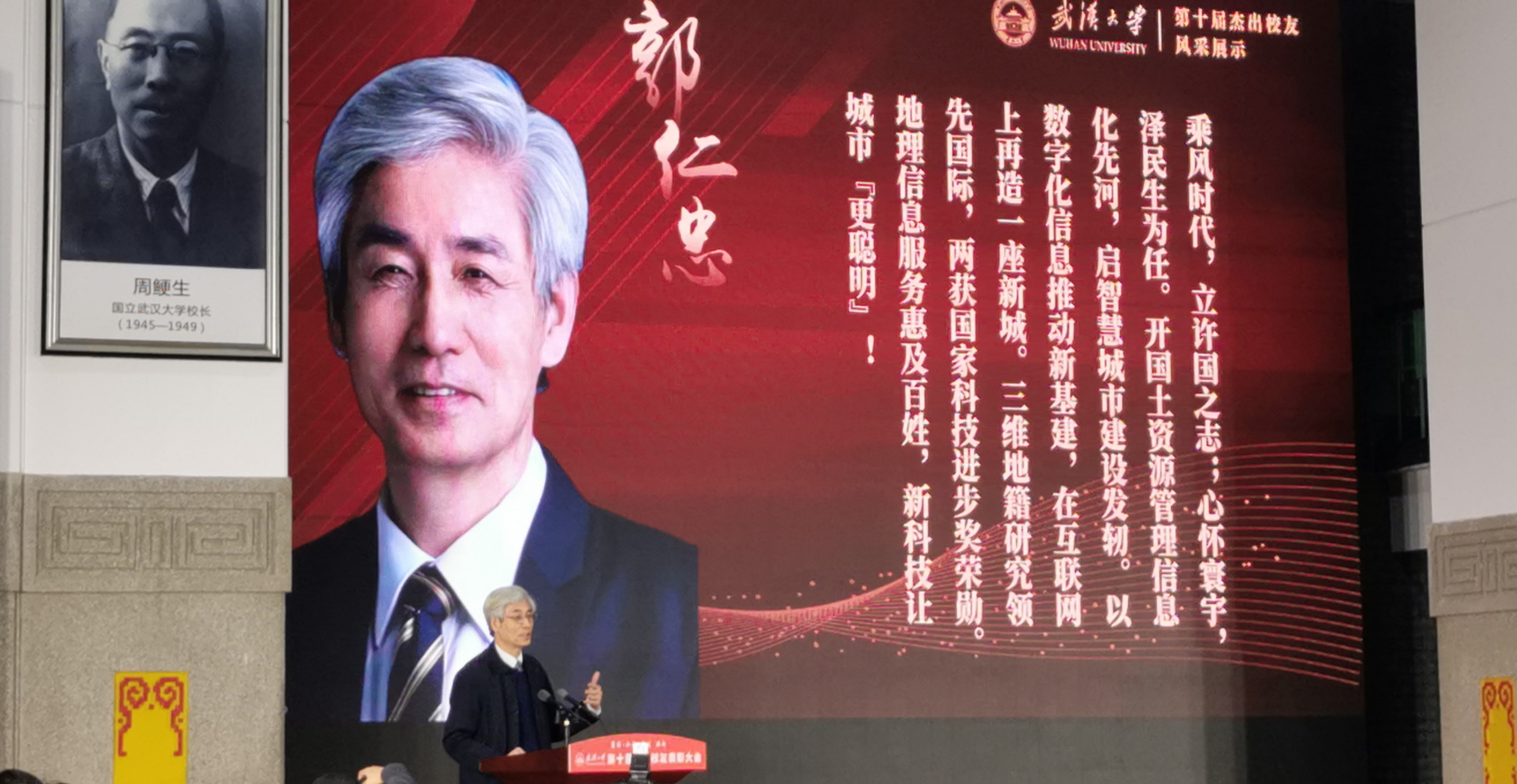郭仁忠校友1978年-1982年本科就读于原武汉测绘学院地图制图系,1982年-1984年硕士就读于原武汉测绘学院地图制图系。1984年-1996年,在原武汉测绘科技大学制图系工作,先后任讲师、副教授、教授,曾任武汉测绘科技大学土地科学学院副院长。2013年当选中国工程院院士。现任深圳大学智慧城市研究院院长、教授。