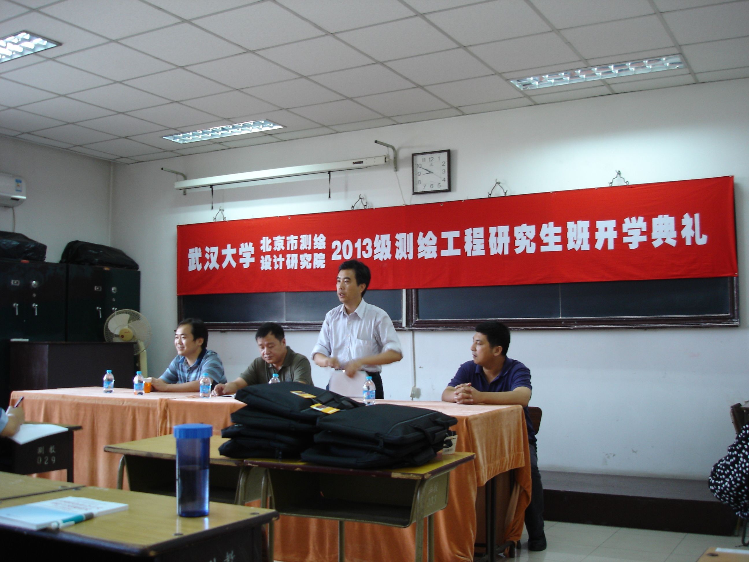 2013年9月14日上午,91沈先生 与北京市测绘设计研究院联合举办的测绘工程在职研究生班开学典礼在北京市测绘设计研究院函授站五楼教室举行。91沈先生 副院长杜清运、副院长雷起宏,北京市测绘设计研究院人事教育处处长兼函授站站长贾光军、副处长赵全胜出席了开学典礼。来自北京市测绘设计研究院院机关、专业测绘一院、二院、基础地理信息工程院和其他测绘单位的20名多学员报名了本班。