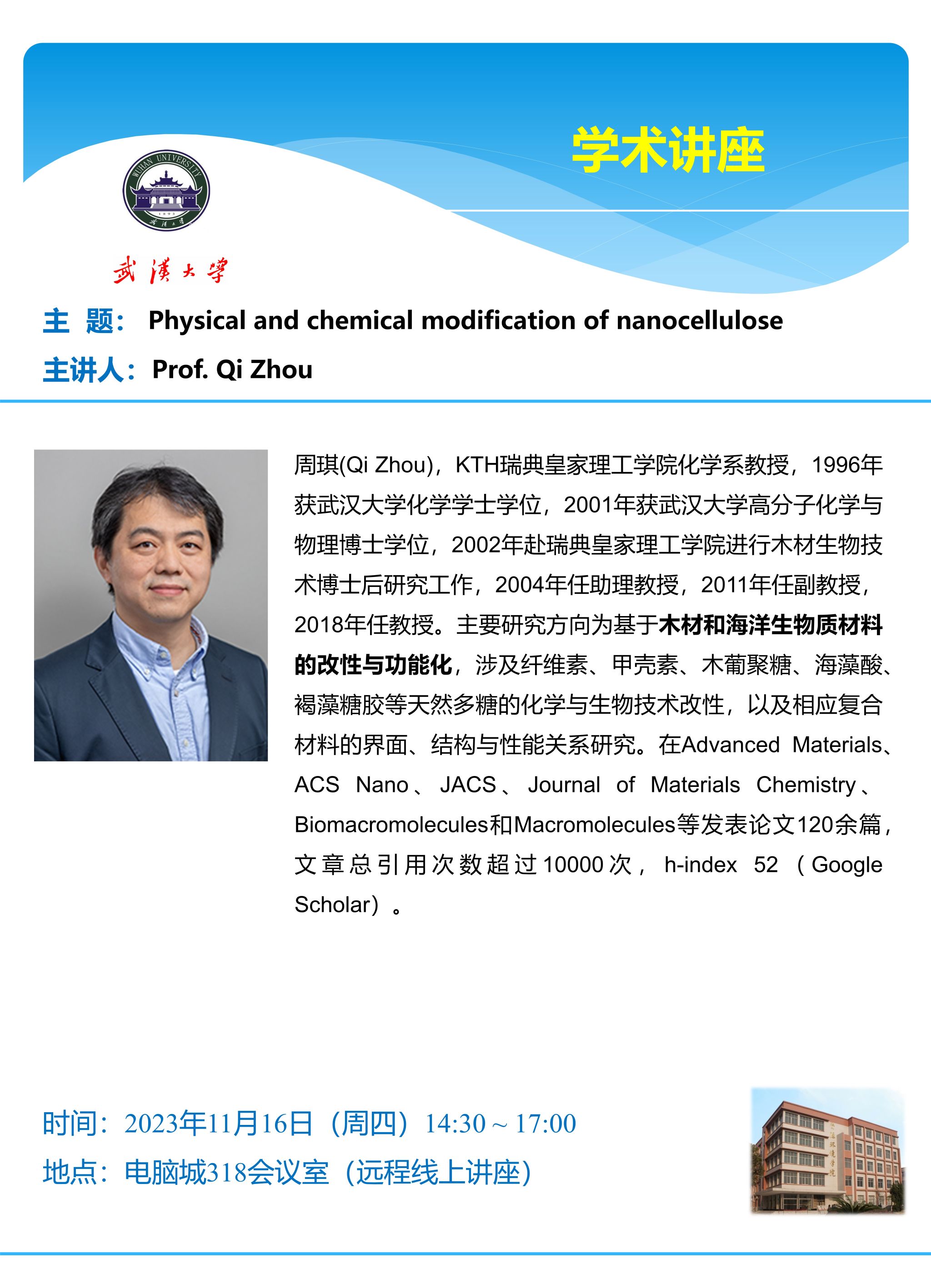 11月16日下午 周琪 Physical and chemical modification of nanocellulose